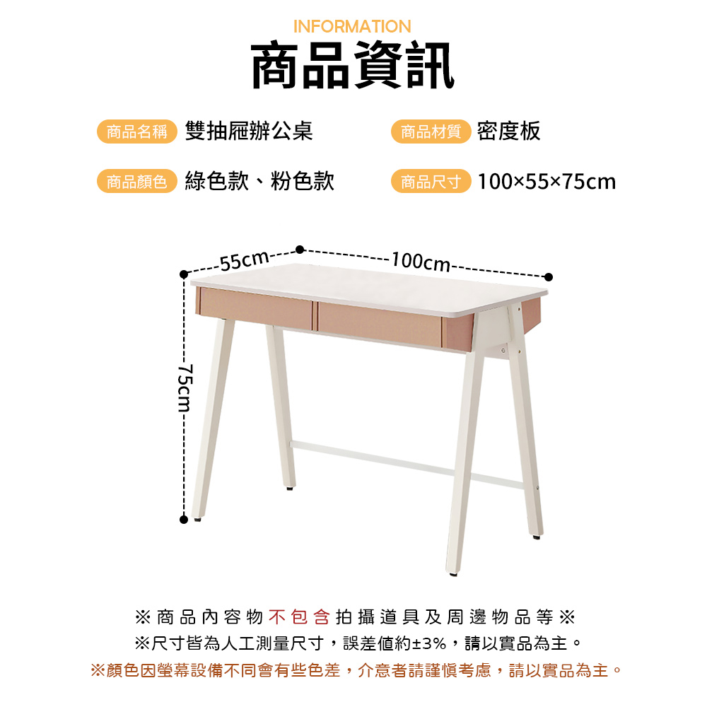 厚實桌腳 不易搖晃尺寸:100*55*75cm±3% 材質:密度板
