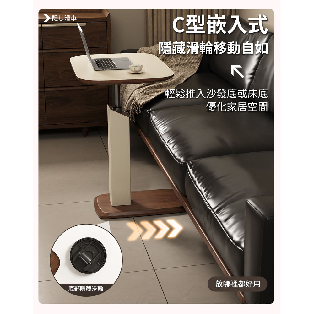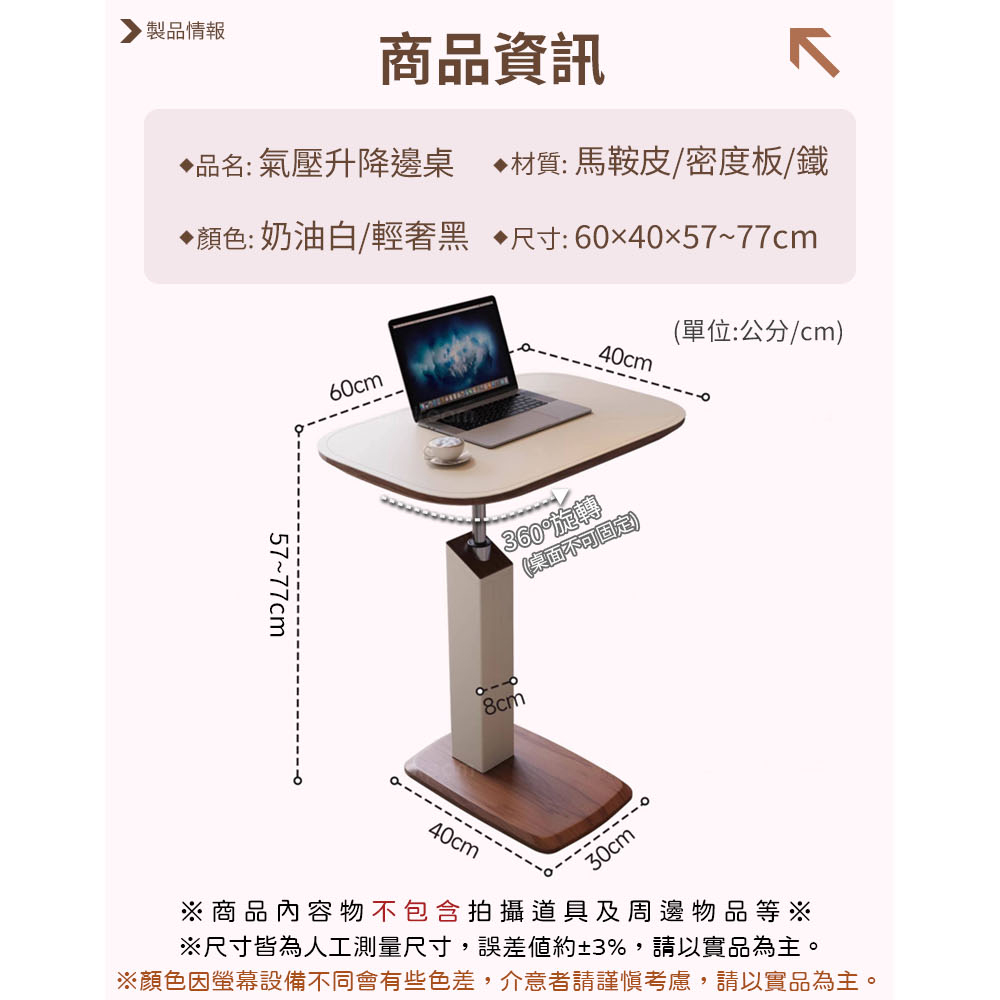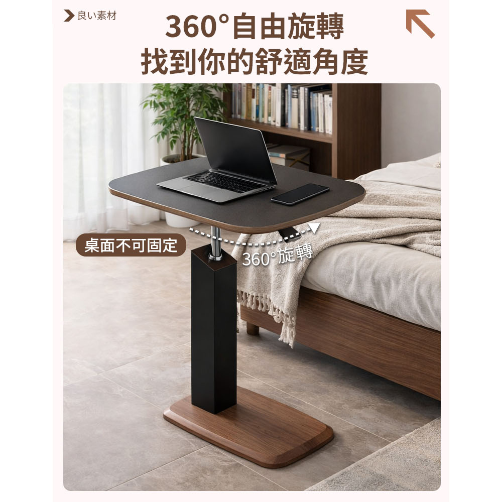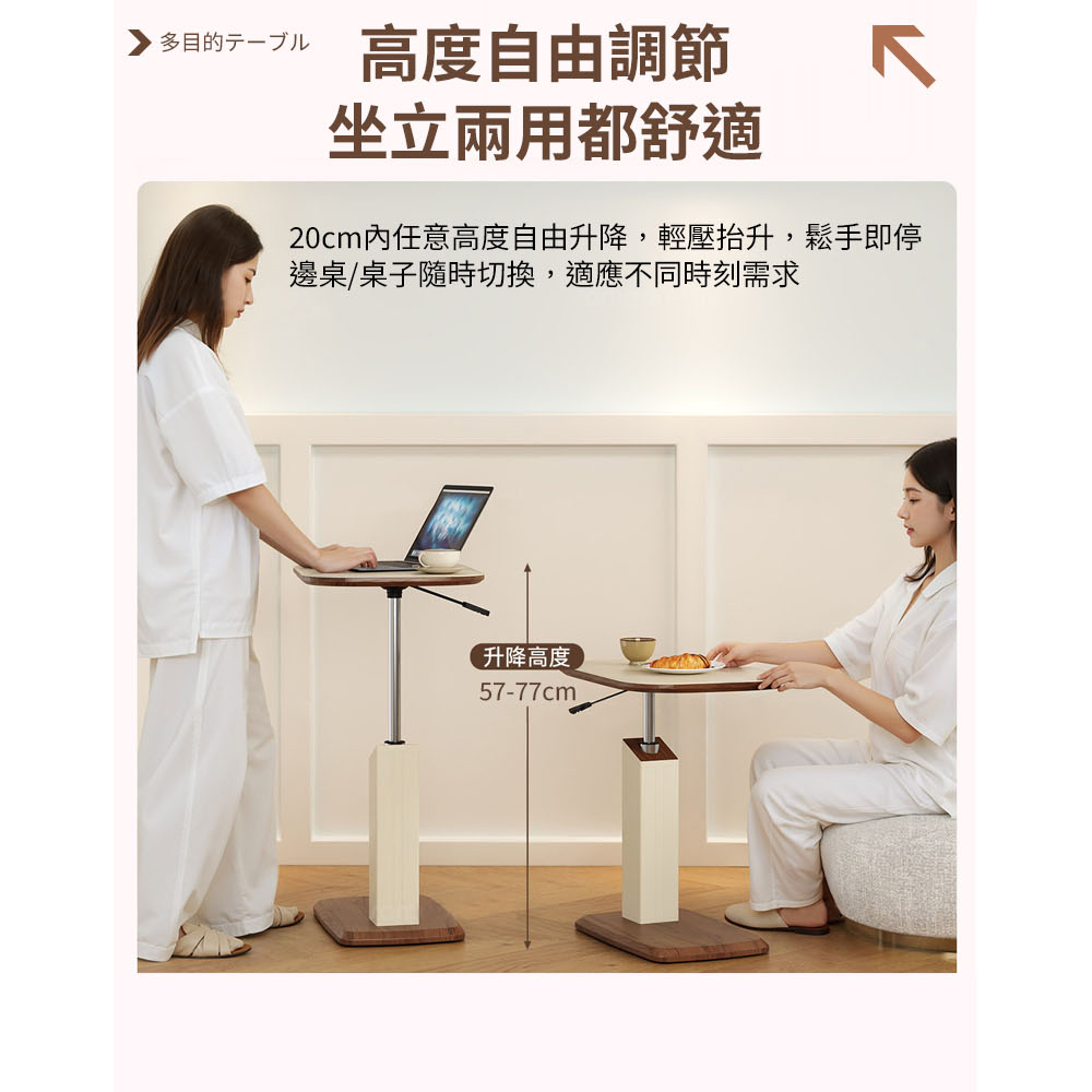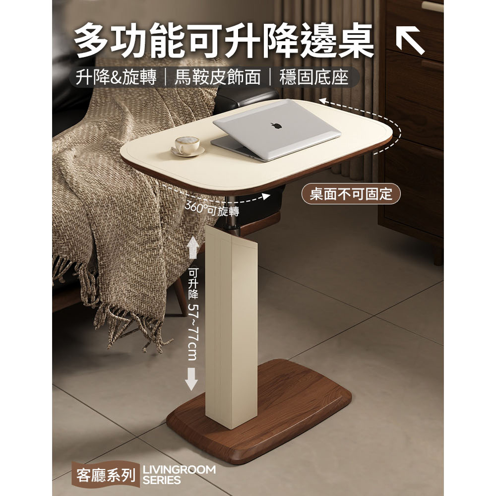 【AOTTO】奶油款可旋轉桌面升降邊桌-奶油白(FT-002W)