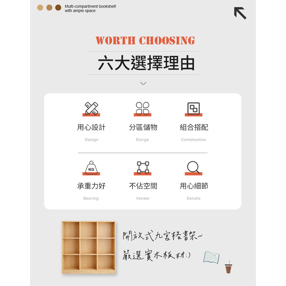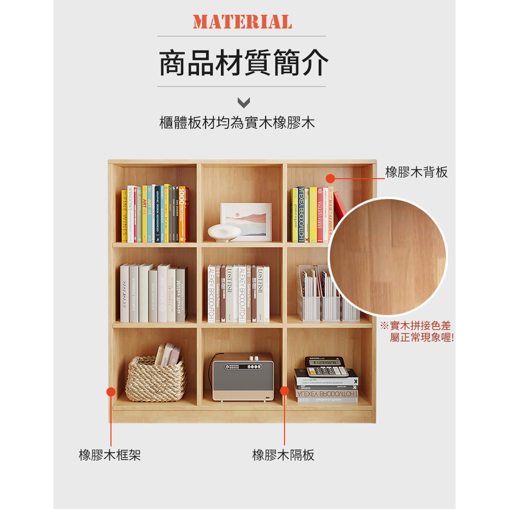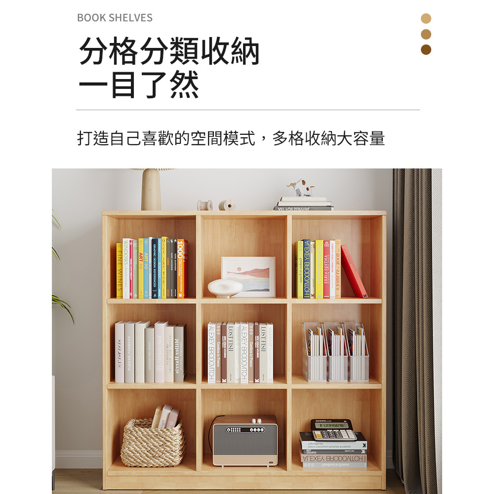 【AOTTO】簡約實木三層九格落地收納置物櫃/書櫃-120公分(WD-040)