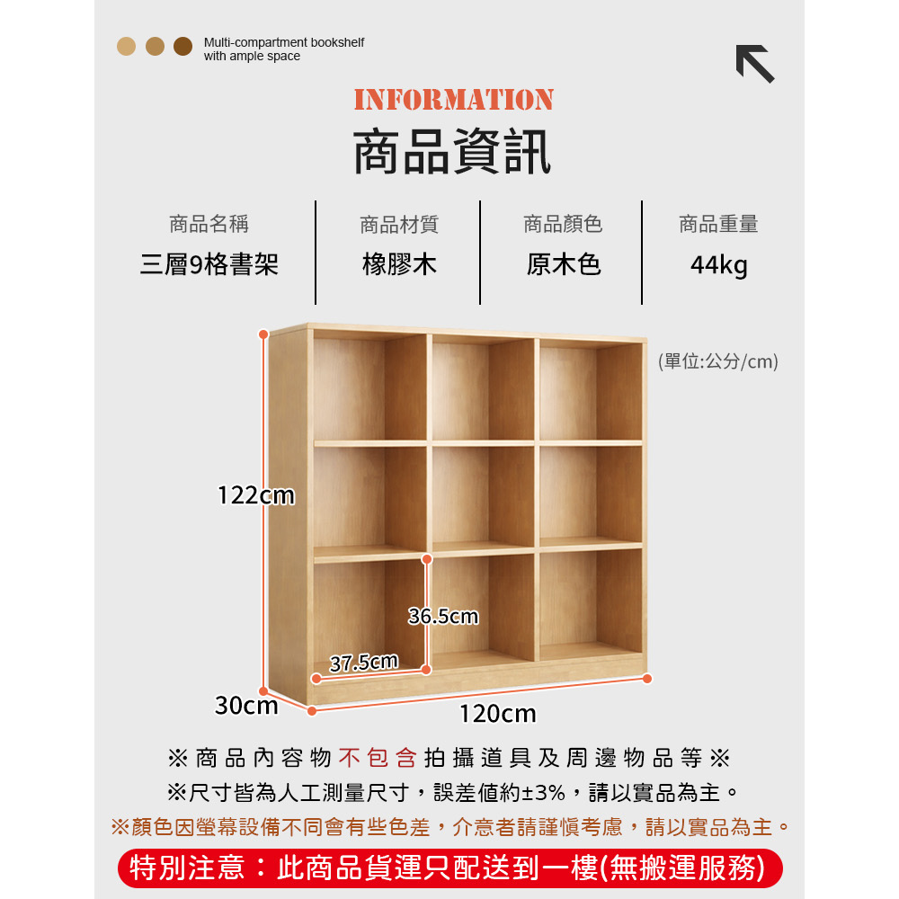 實木板材 結構穩固加厚材質 耐重耐用分格分類 一目了然尺寸:120*30*122cm±3%