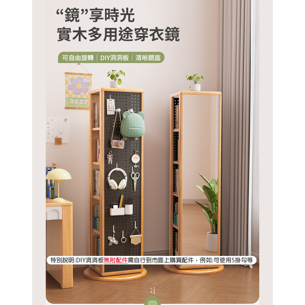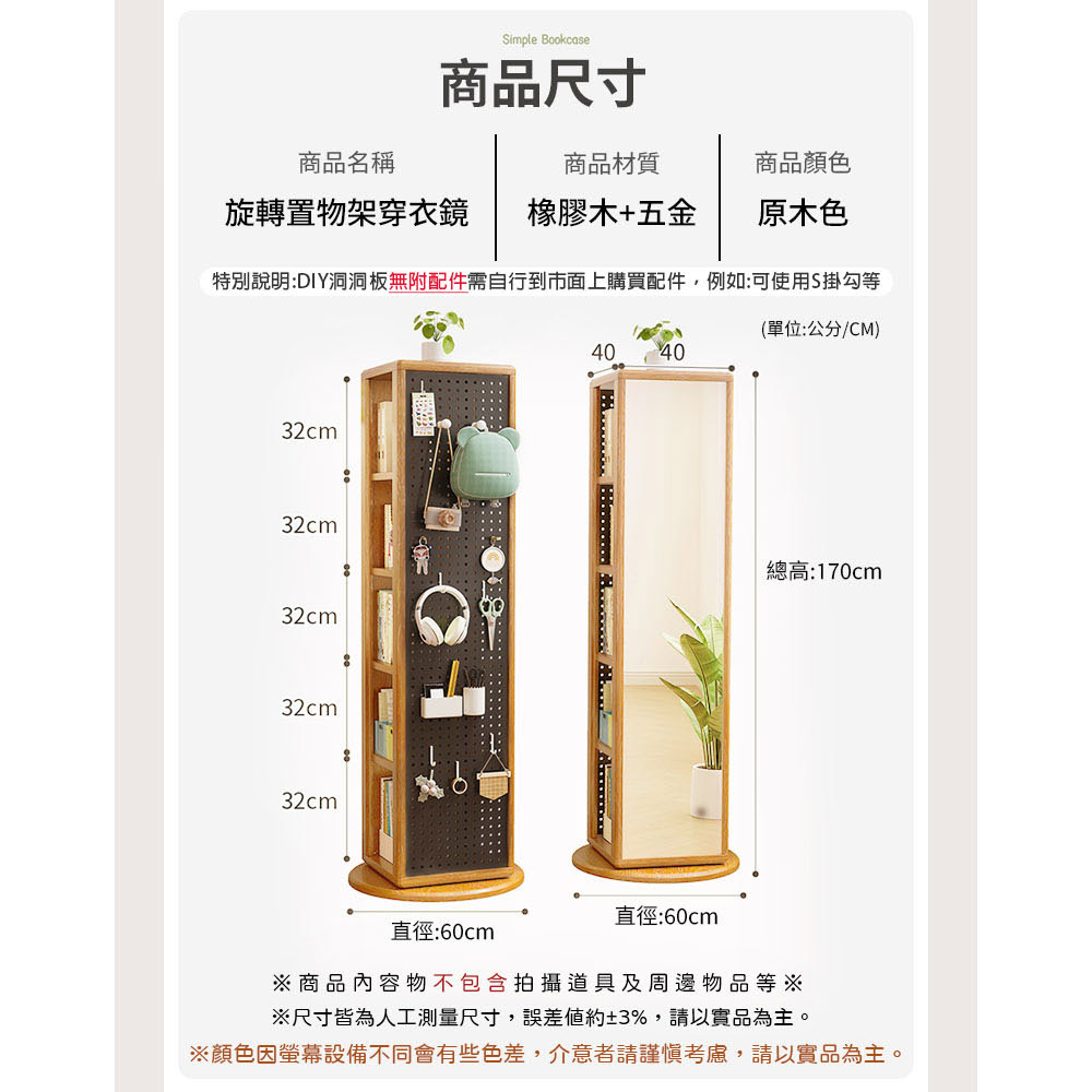 旋轉設計 收納+全身鏡大容量收納 不佔空間實木材質 堅固耐用尺寸:60*60*170cm±3%材質:實木