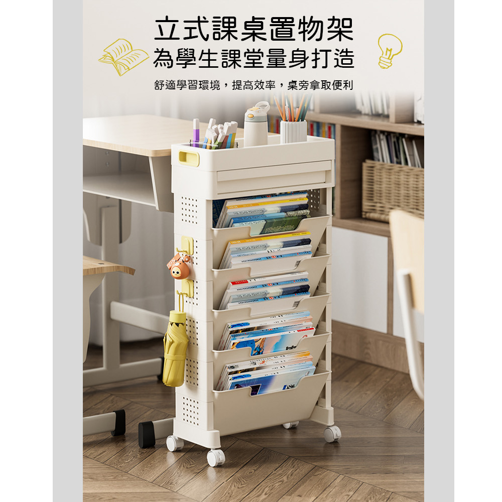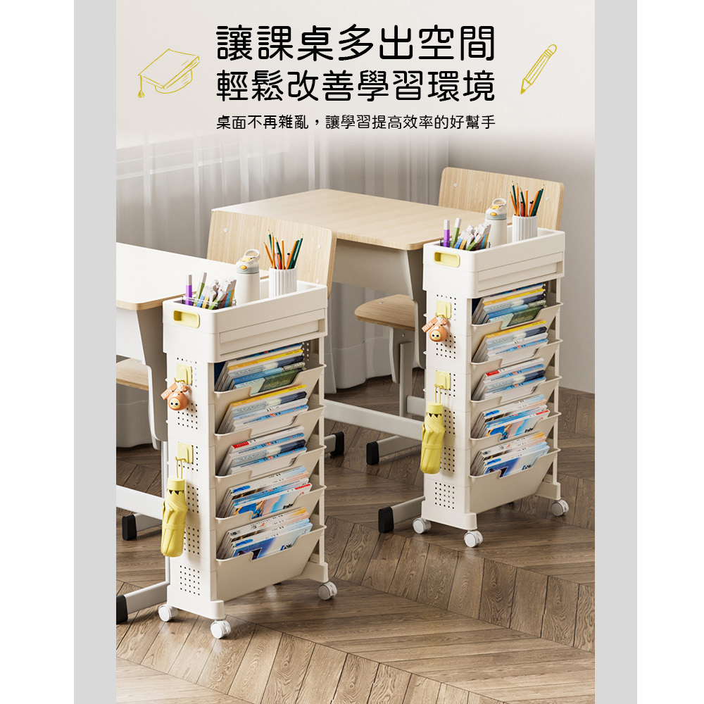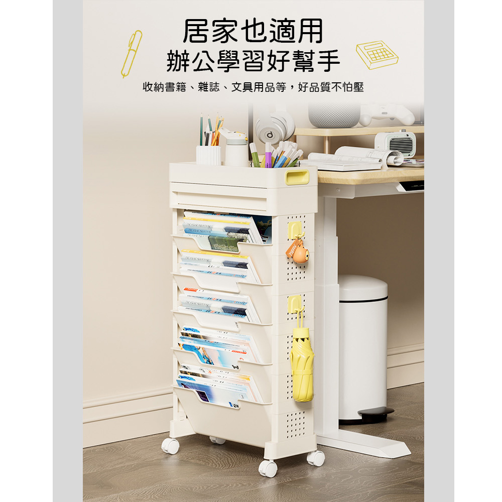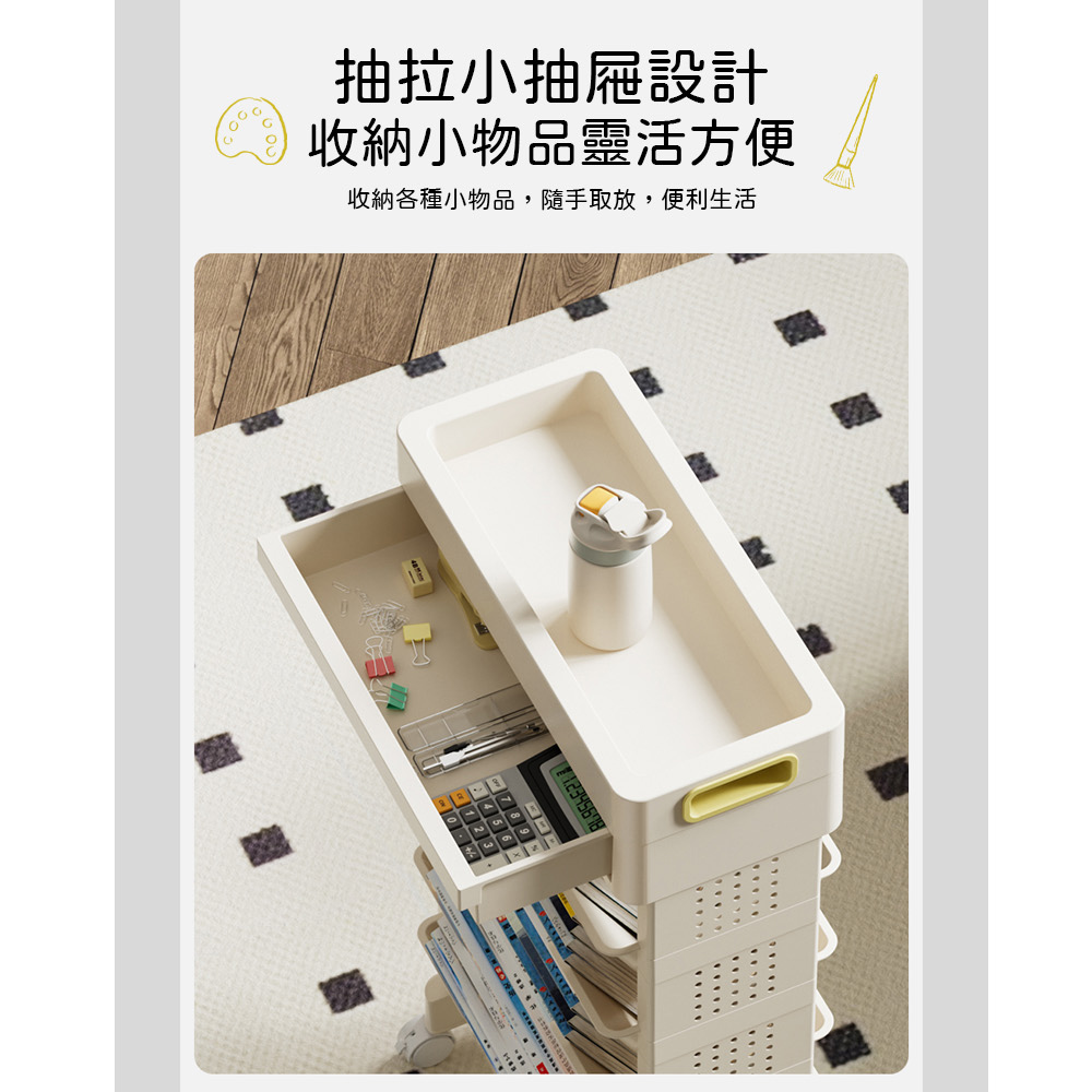 【AOTTO】大容量移動附抽屜五層收納書架(AS-602)