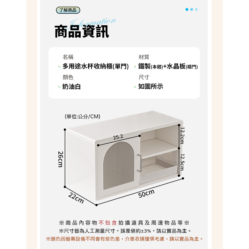 櫃門可拆 左右推拉 隱藏抽屜 多層收納 加厚材質 堅固抗壓尺寸:50*22*26cm±3%