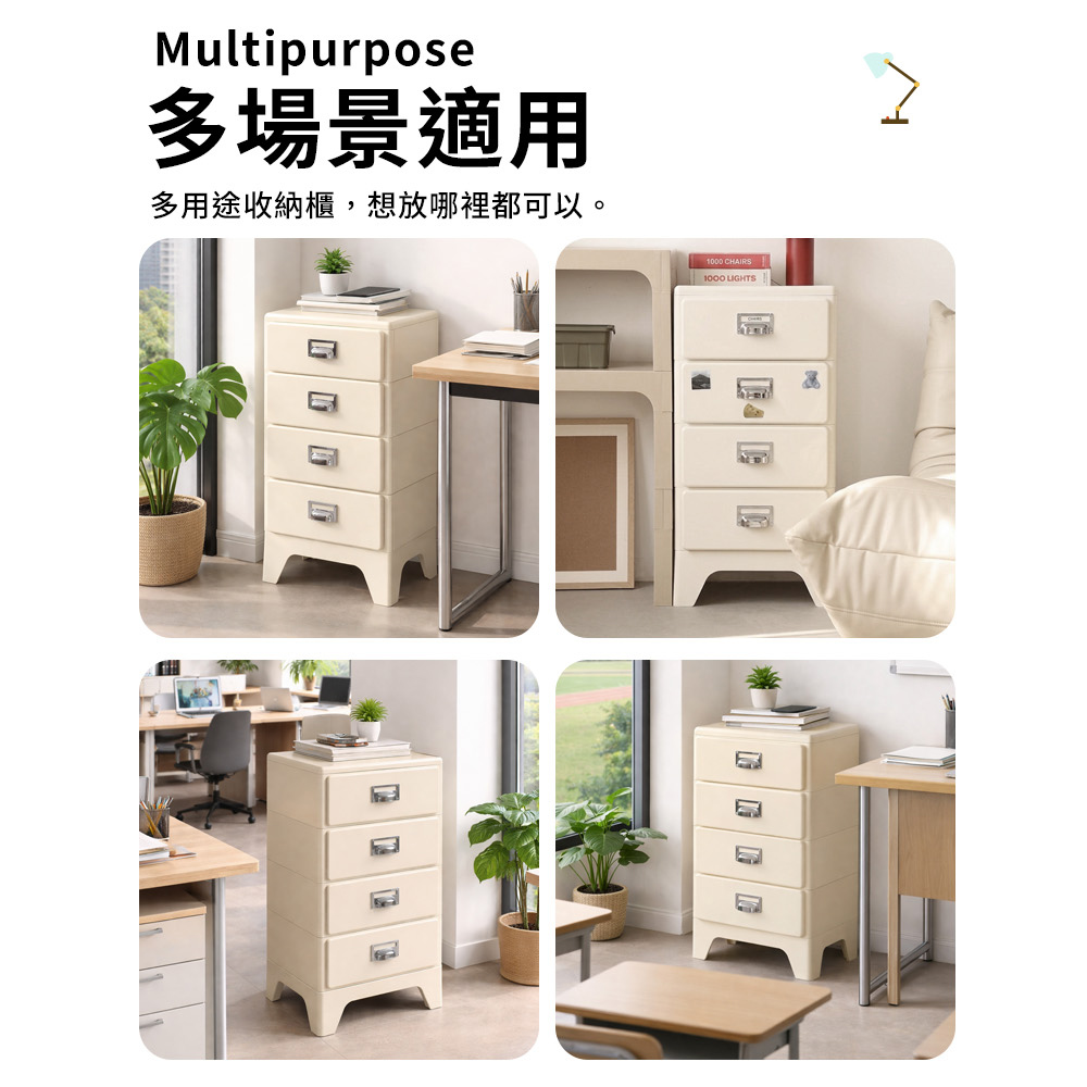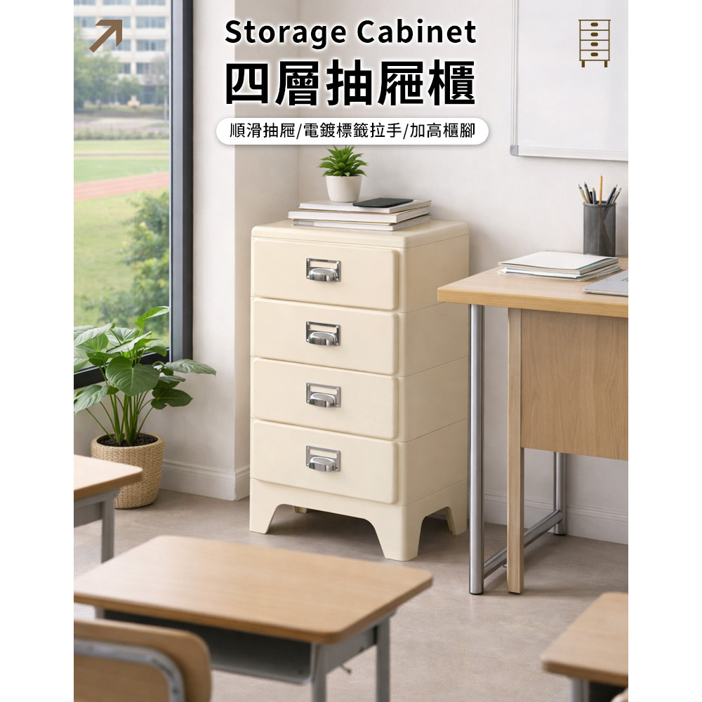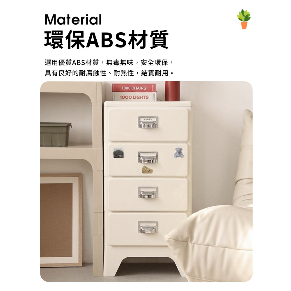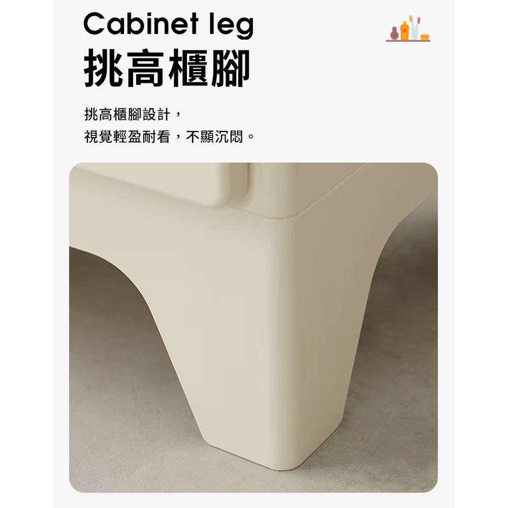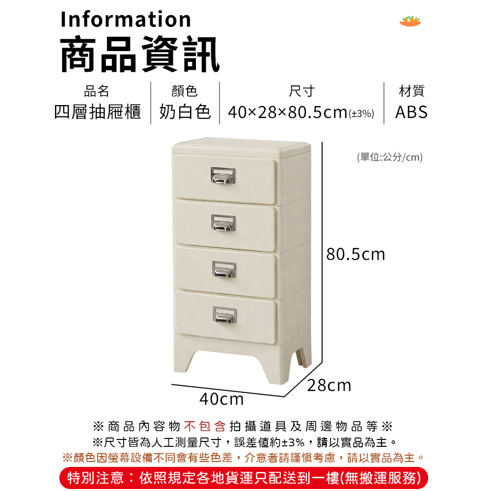 免組裝收納櫃!圓潤邊角 抽屜順滑環保材質 結實耐用電鍍拉手 加高櫃腳尺寸:40*28*80.5cm±3%