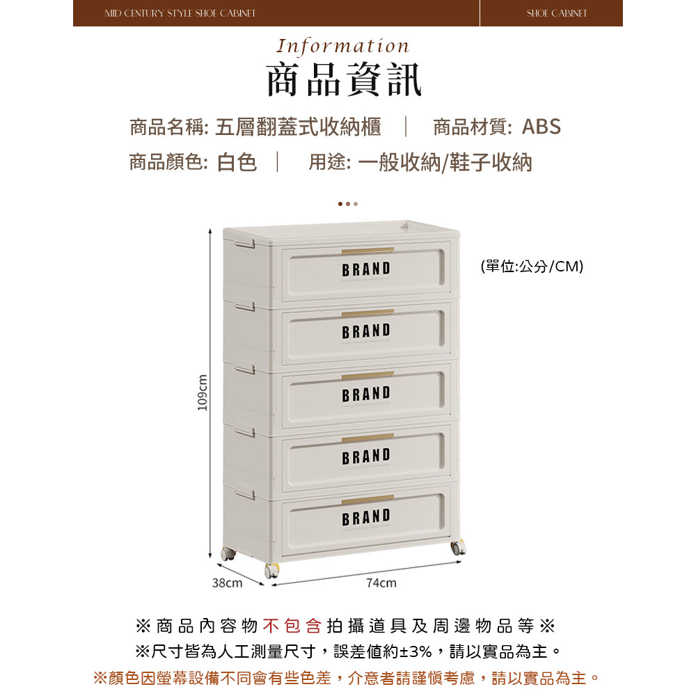 【AOTTO】74面寬簡約附輪五層翻蓋收納櫃(AC-222)