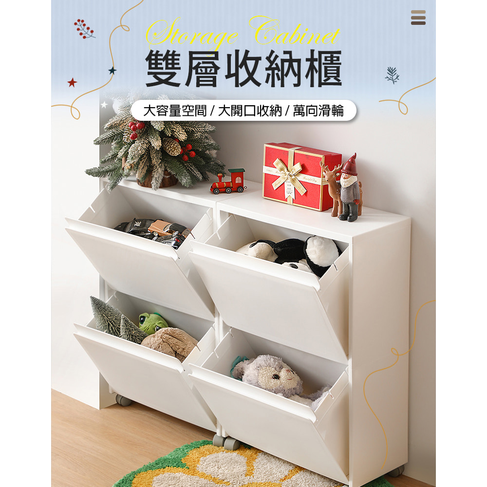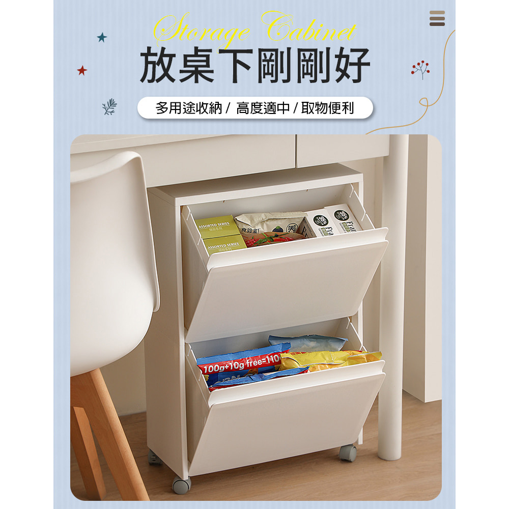 【AOTTO】免組裝大開口斜取附輪雙層桌下收納櫃(AC-223)