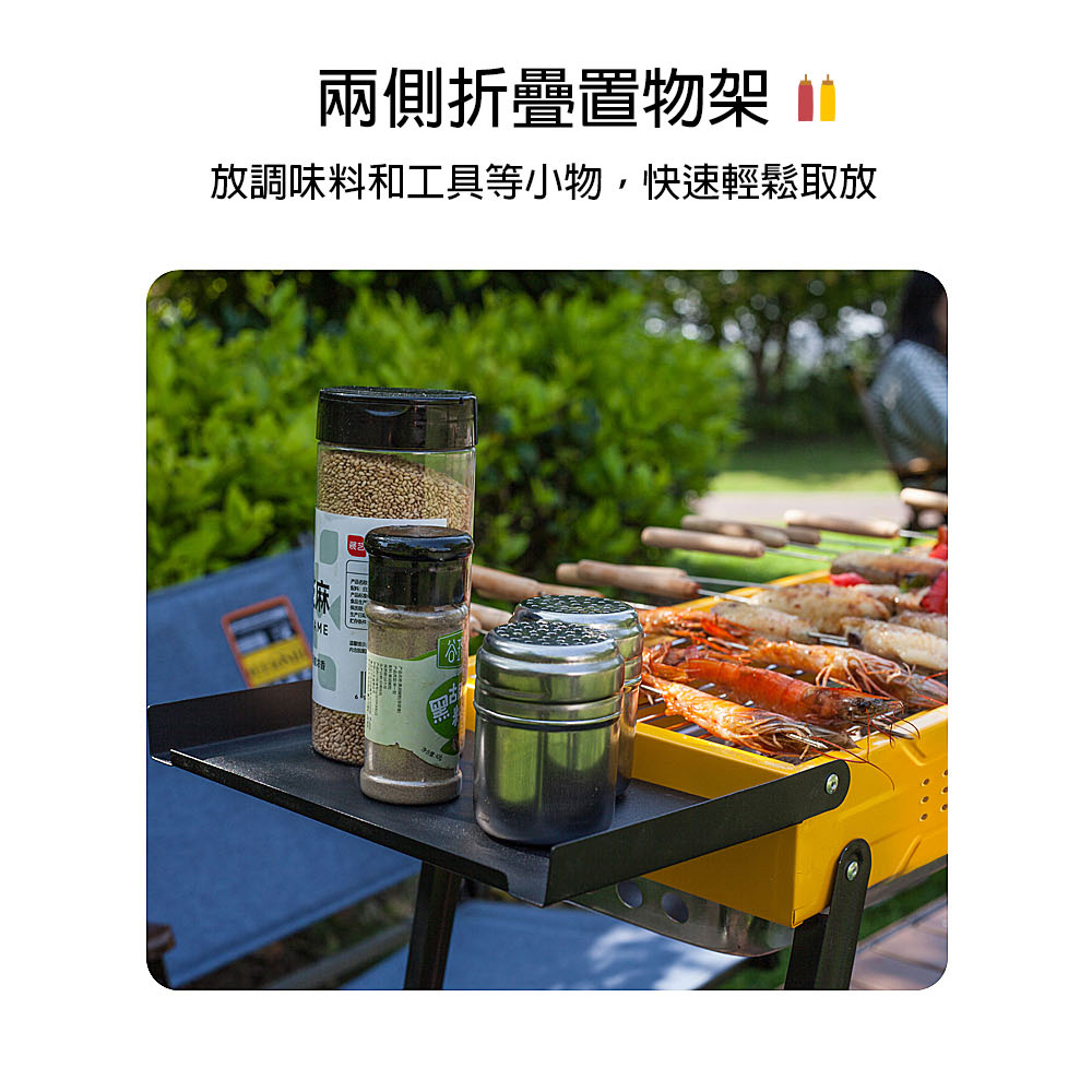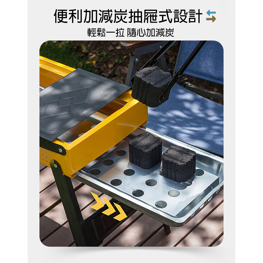 【AOTTO】戶外抽拉碳槽折疊不銹鋼烤肉架(RO-003)