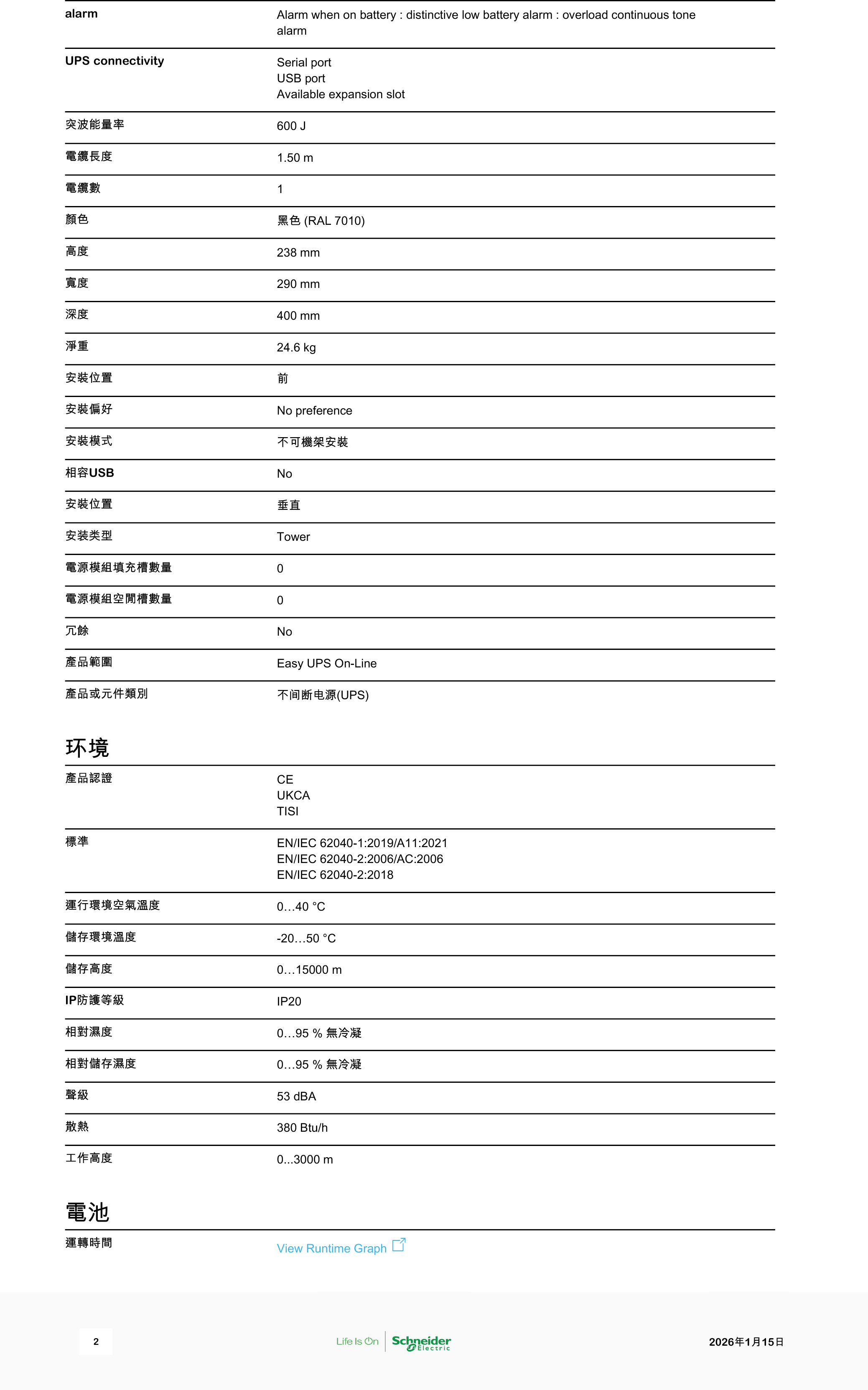 最多可加裝 4 個外部電池組 (SRV36BP-9A) 以延長備援時間