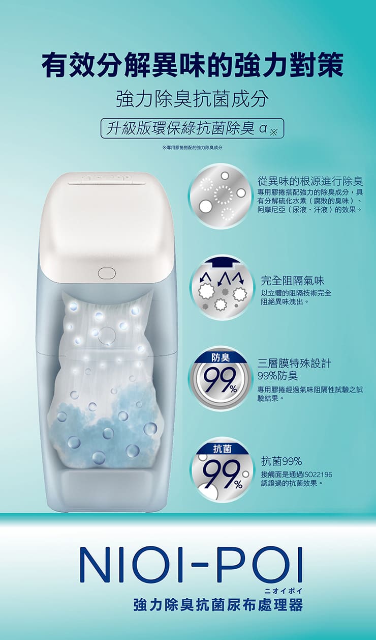 有效分解糞便異味!NIOI-POI強力除臭尿布處理器