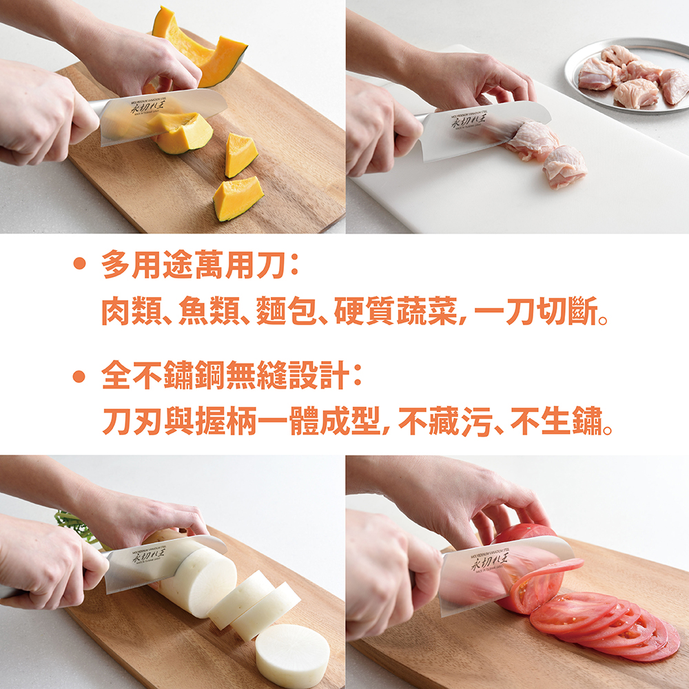 不論切肉、魚、硬蔬菜或麵包,都能一次到位,長效鋒利。