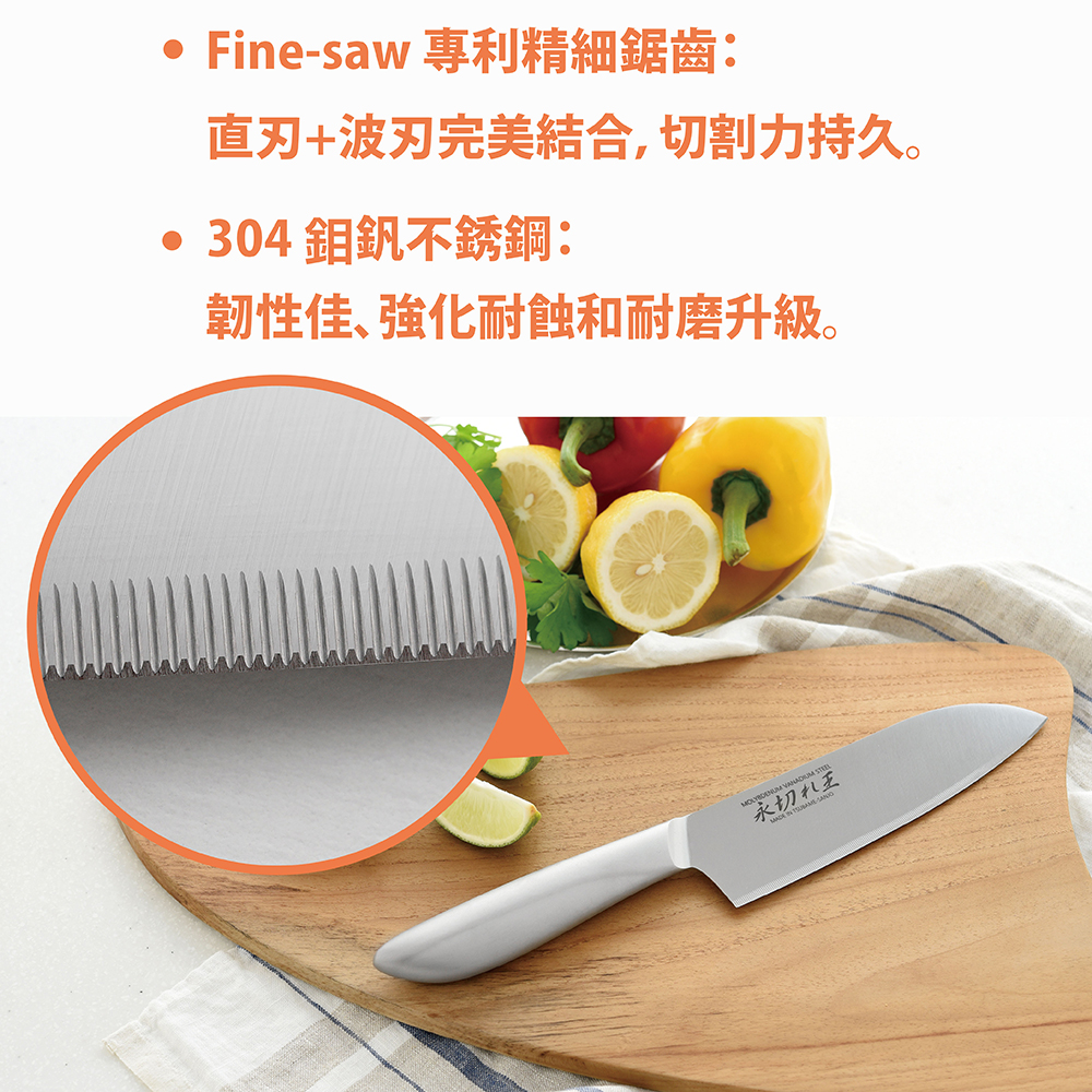 採用專利 Fine-saw 精細鋸齒工法,完美結合直刃與波刃優點,