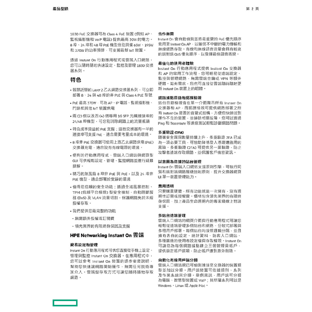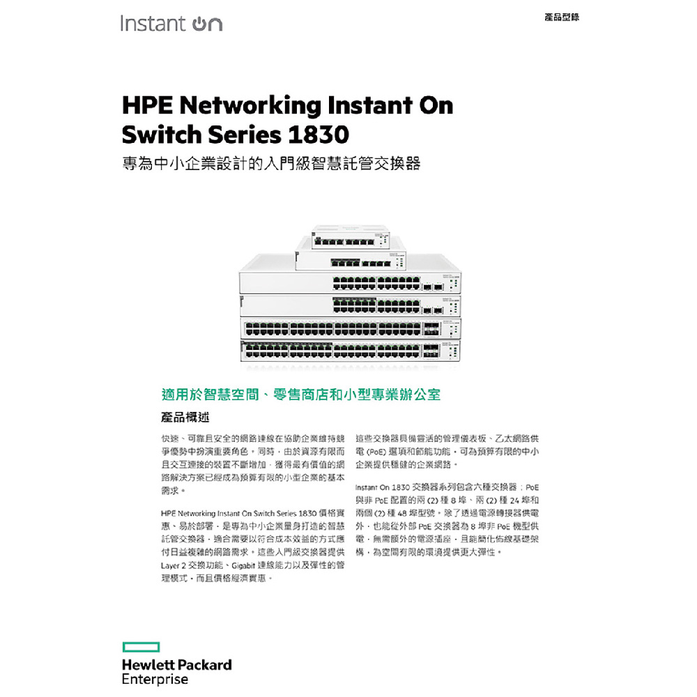 昌運監視器Aruba HPE Instant On 1830 24G 2SFP 195W 24埠交換器(JL813A)