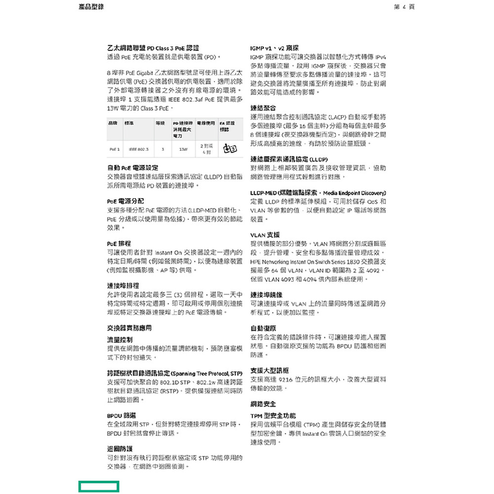 連接埠24 個 RJ-45 10/100/1000 Class 4 PoE 連接埠,2 個 SFP 1 GbE 連接埠