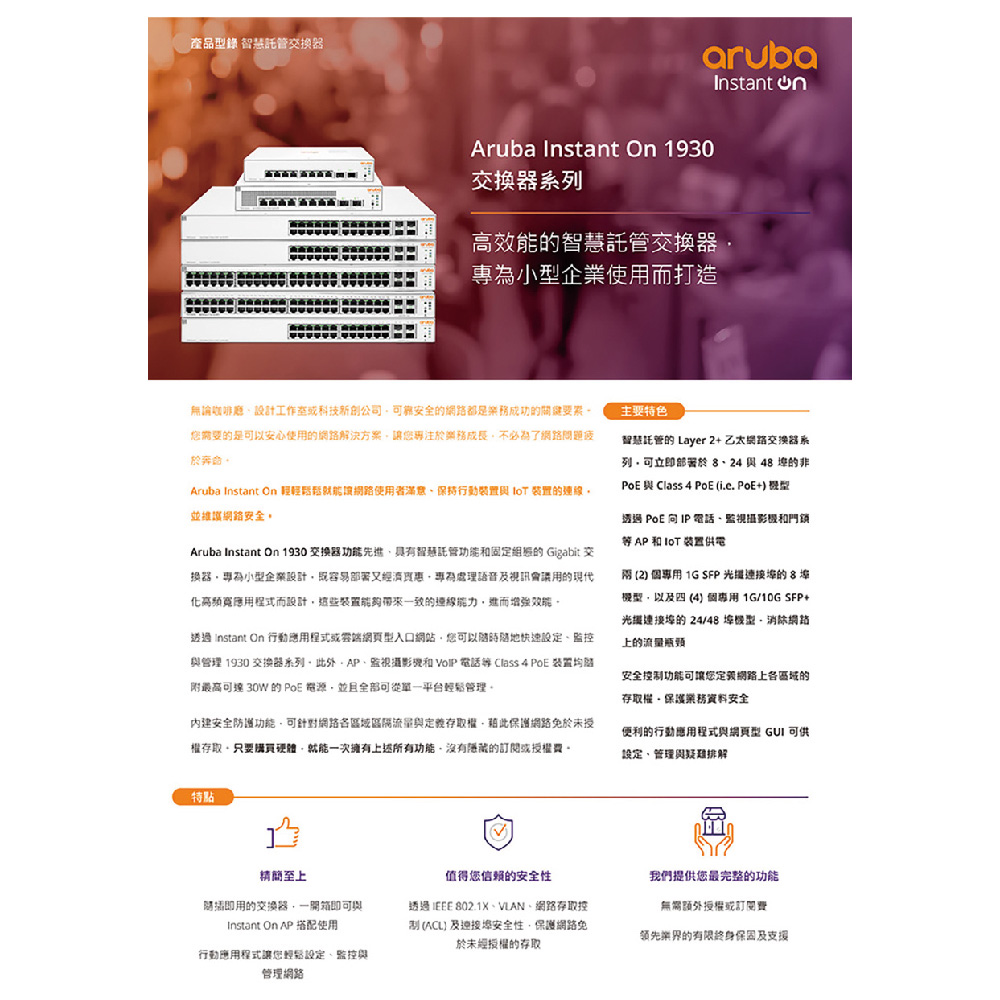 昌運監視器Aruba HPE Instant On 1930 24G Class4 PoE 交換器(JL683A)