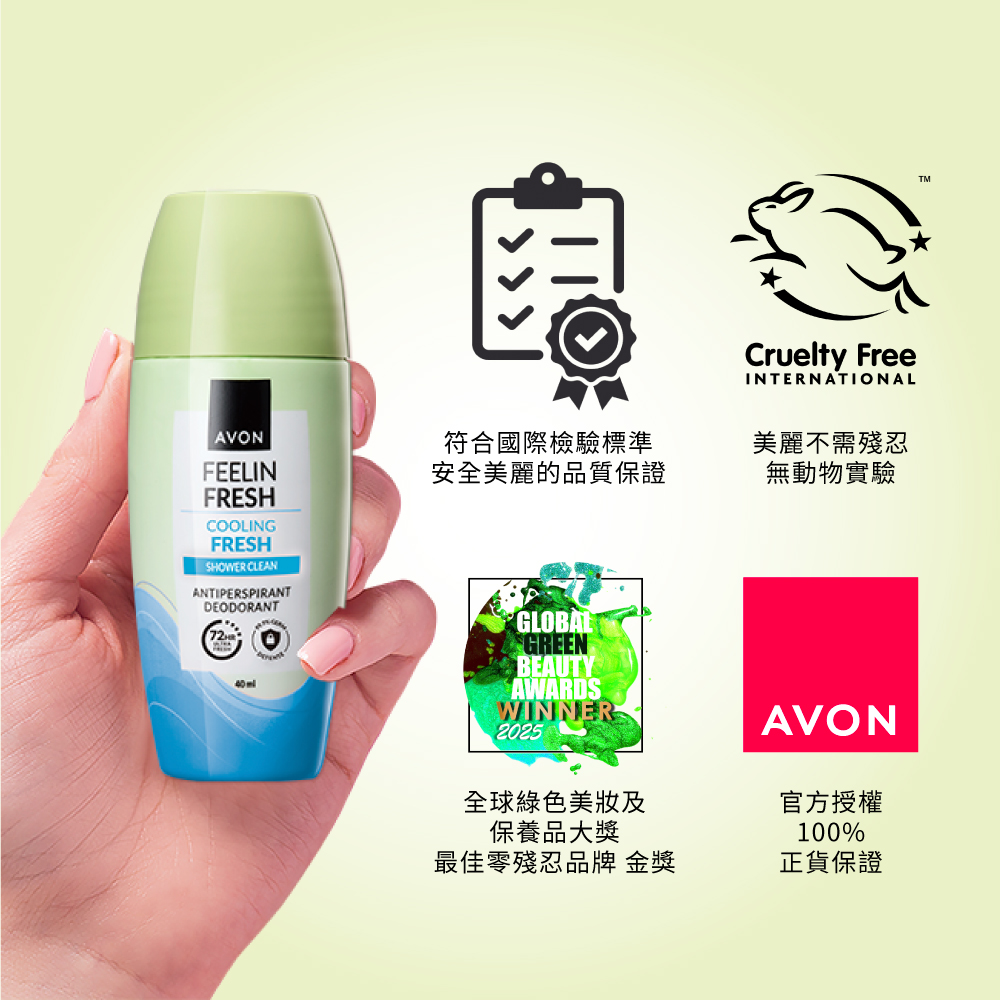 AVON升級版制汗體香劑系列,24H止汗× 72H抑味× 迷人體香,讓妳一次擁有!