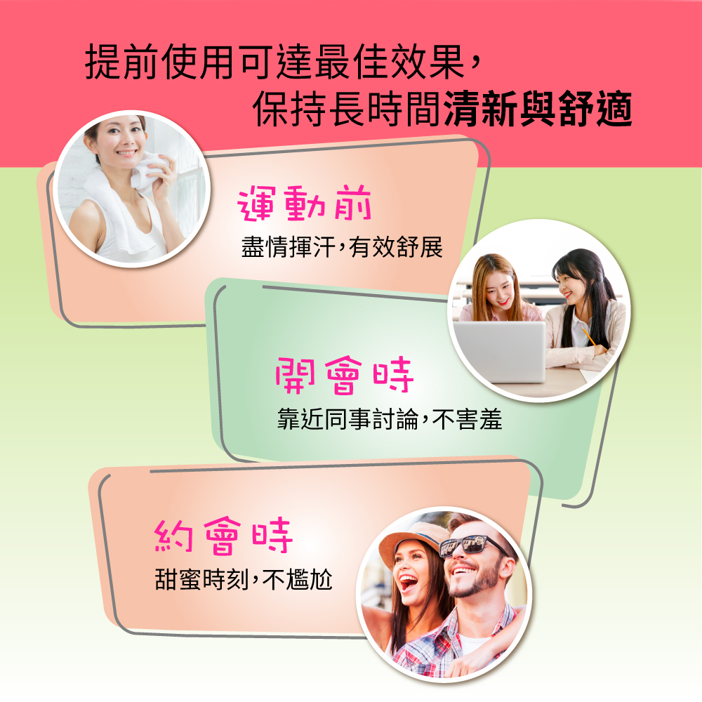● 24小時止汗 :一整天都舒適乾爽