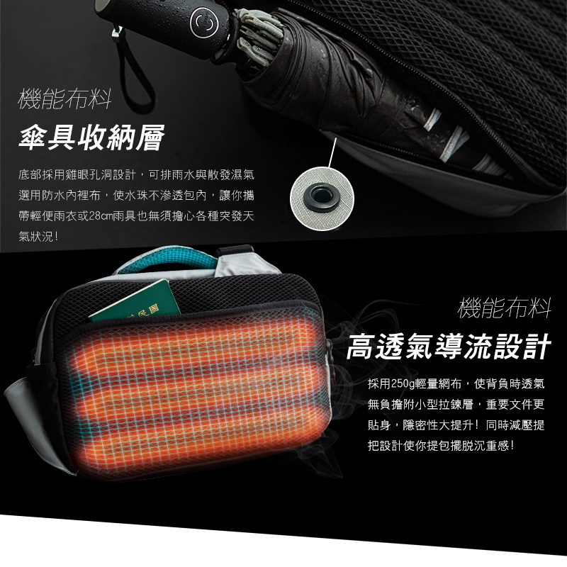 專為城市通勤族量身打造,擁有強勁收納防水夾層!
