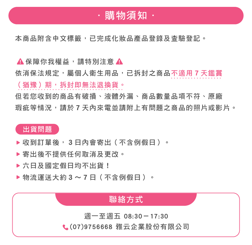 【退/換貨&售後服務】