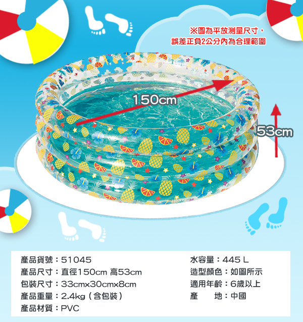 充氣尺寸:直徑150x高53cm