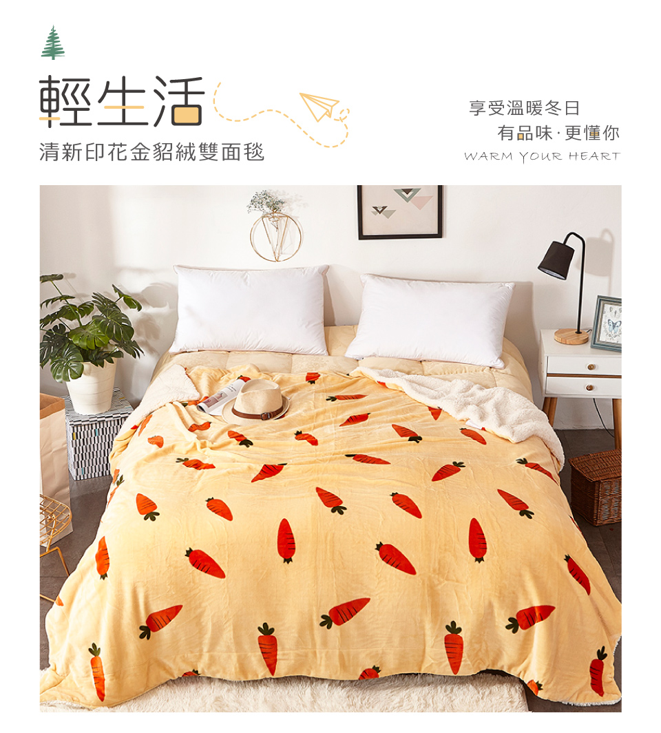 【Betrise】 Carrot | Anti-static Upgrade - Light Living Fresh Print Warm and Soft Golden Mink Fleece Double-Sided Blanket 150x200cm