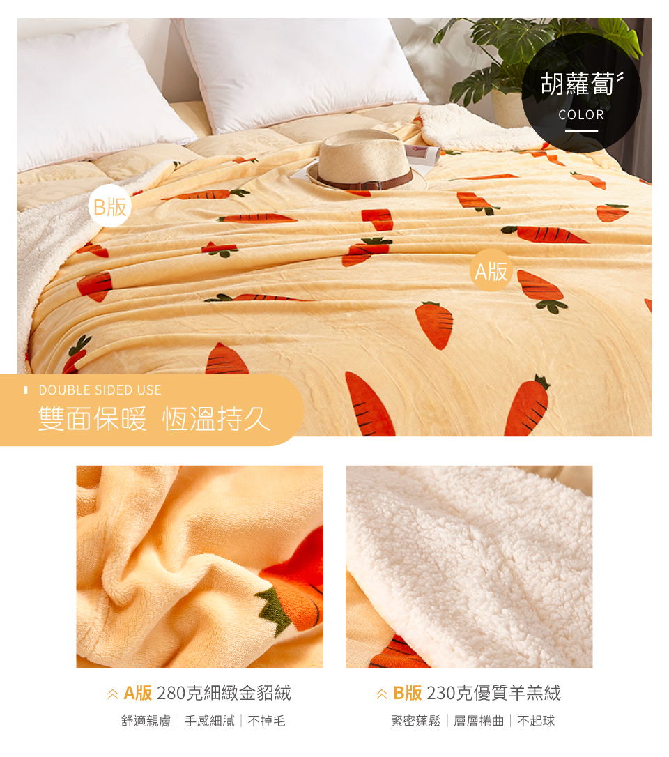 ☆升級-印金貂絨X羊羔絨雙層設計☆高克重面料 柔細親膚 溫暖觸感☆抗靜電 創新領先採用細絨品質
