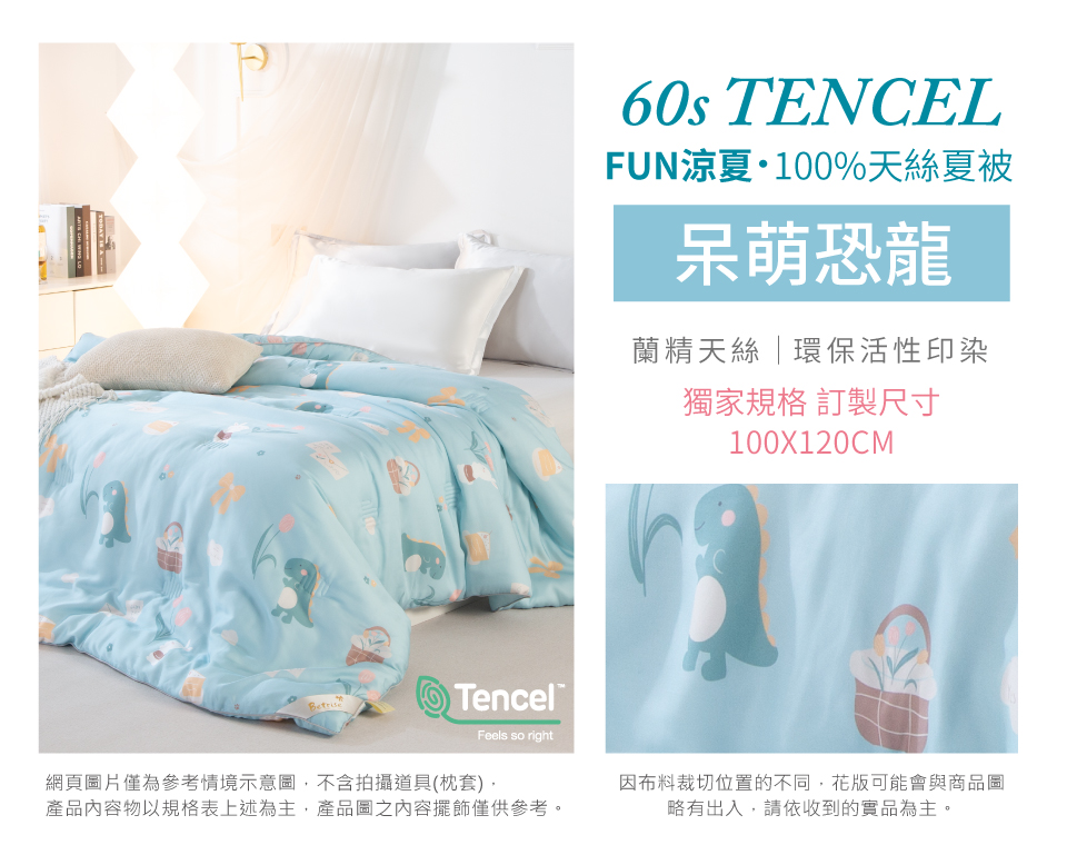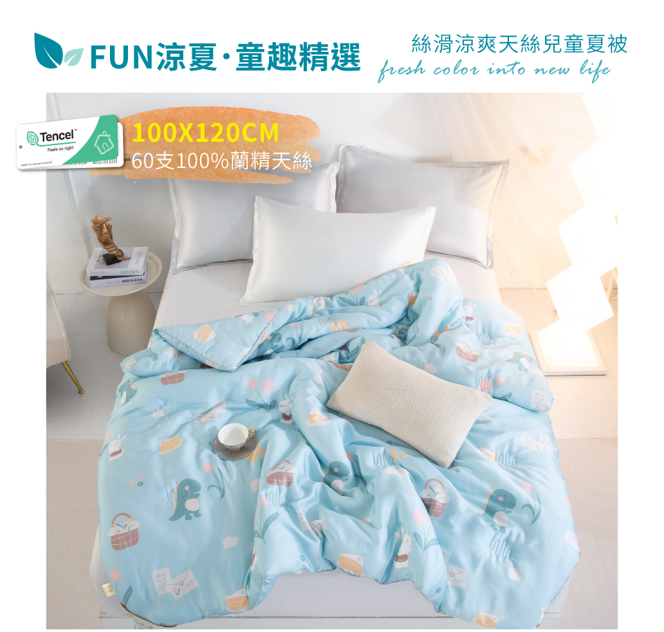 【Betrise】Adorable Dinosaur | 60-count 100% Tencel Fluid Children's Quilt 100x120cm