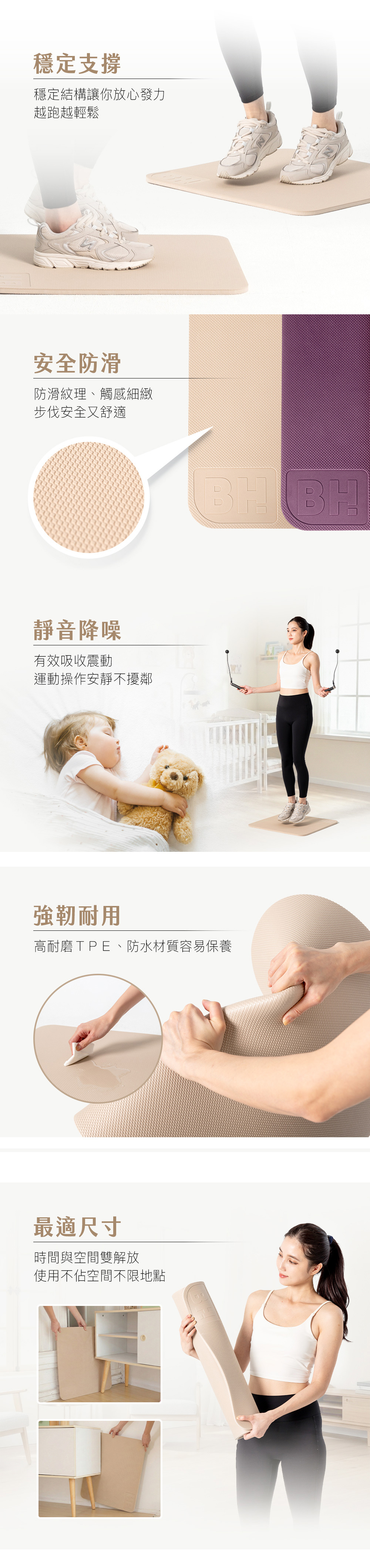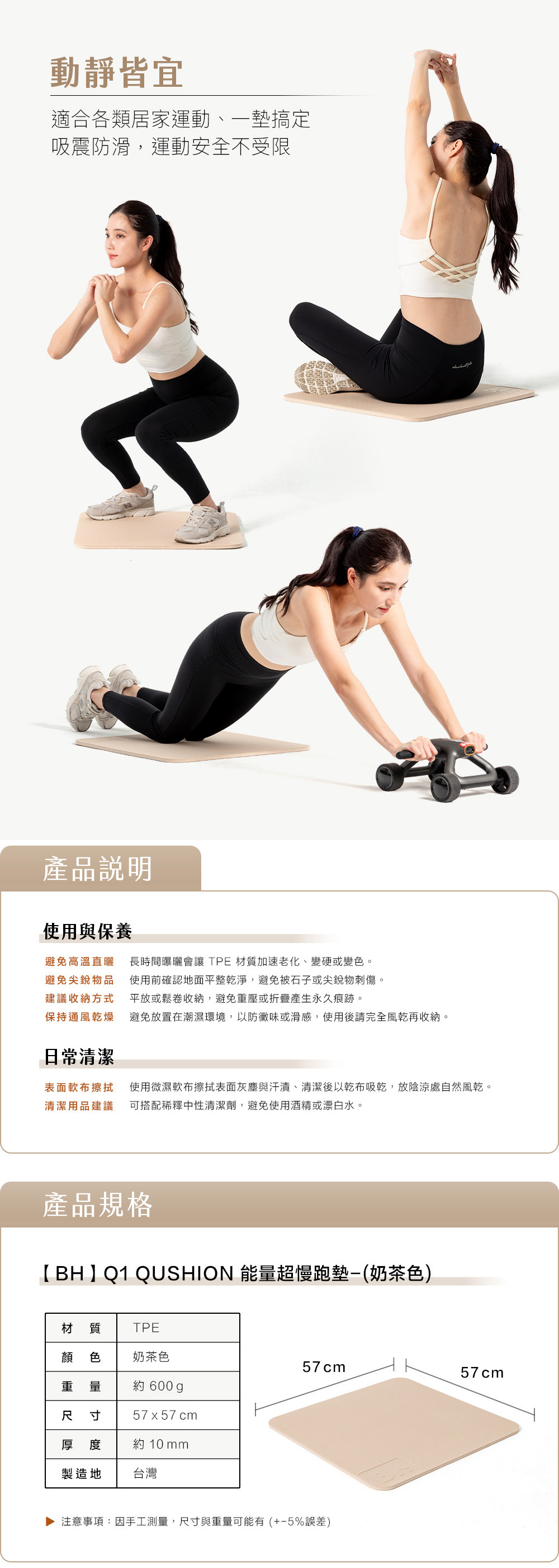 ▲適合高強度訓練或靜態運動使用《注意事項》 1.可用清水直接沖洗,或是使用中性清潔劑洗滌後陰乾,亦可直接用乾布擦拭。 2.避免靠近尖銳物品,以減少瑜珈墊或人體受傷害。 3.避免陽光直射及高溫環境,以防瑜珈墊遇熱變質。 4.兒童、病人或殘疾人士使用該產品時,必須有人協助5.商品取出後有原料味,此為商品正常現象,建議於通風處置放2到3天,味道將會自然散去。