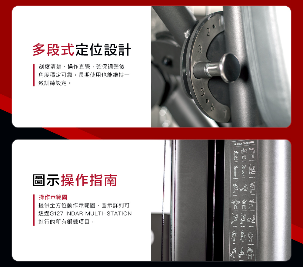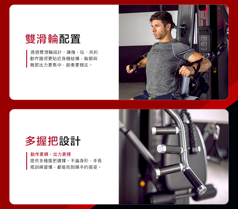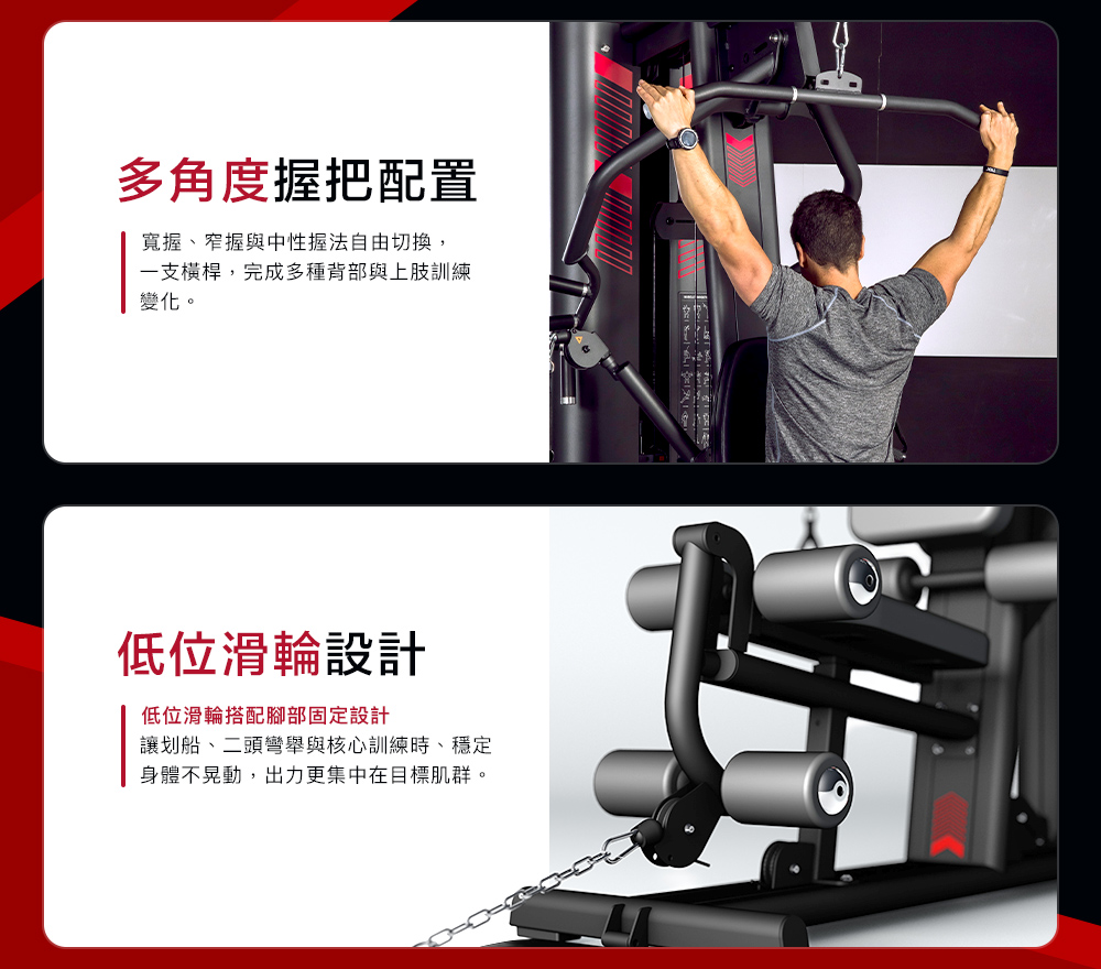▲低滑輪設計,目標肌群集中出力
