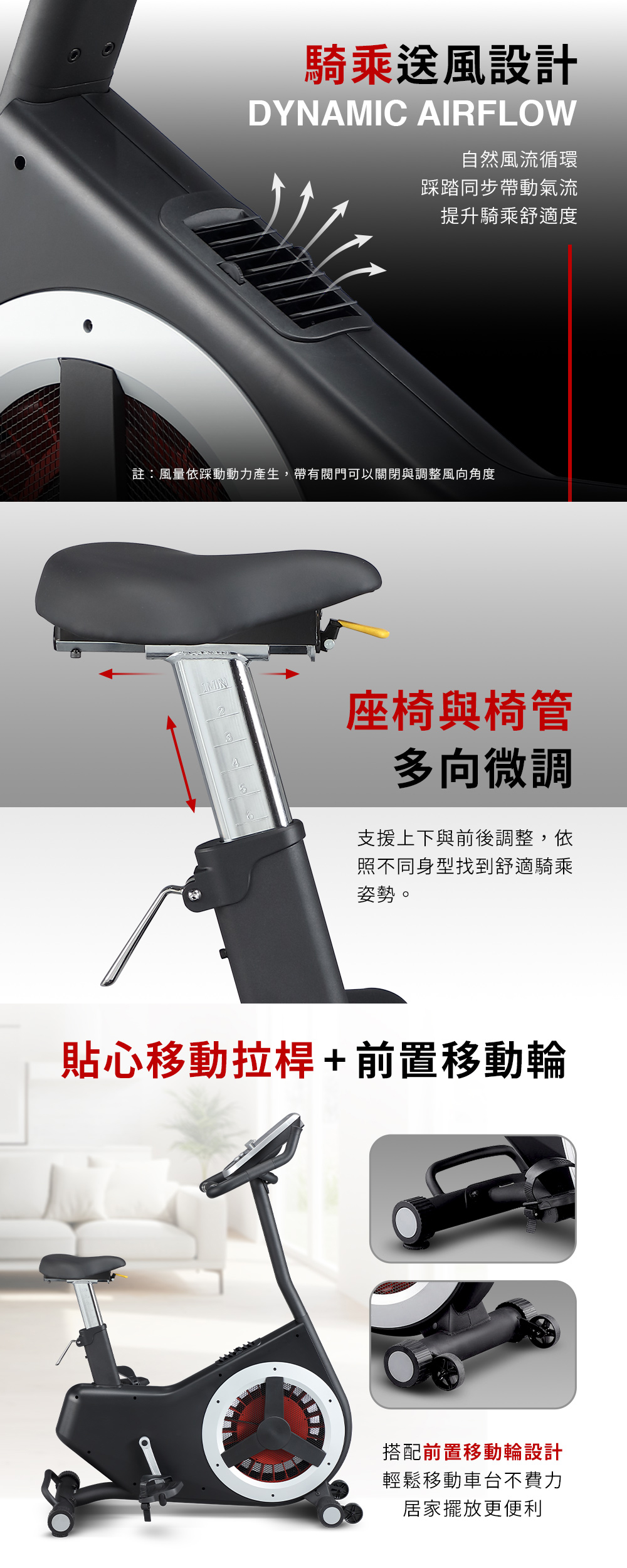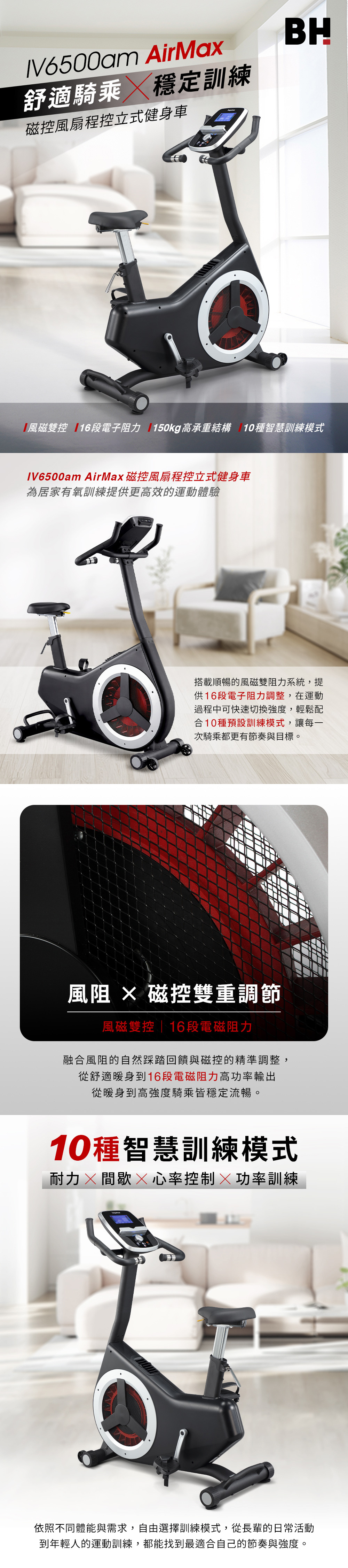 ▲風阻磁控雙調節,騎感更順▲16段電子阻力,強度精準▲150kg高承重,穩定耐用▲10種智慧模式,訓練多元▲多媒體整合,娛樂升級