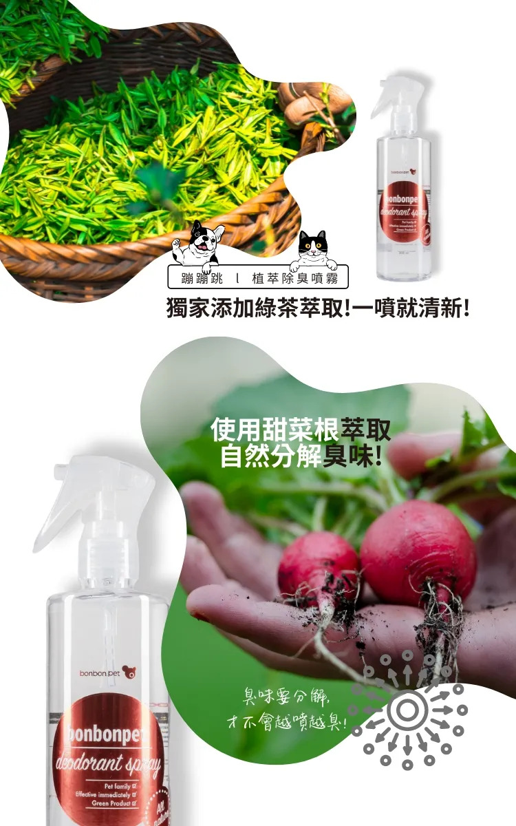 ◎ 獨家採用綠茶萃取,一噴就清新◎ 甜菜根萃取,自然分解臭味◎ 環保安全成分,舔到無害,狗貓家庭適用 ,,◎ 噴灑於環境或毛孩身上(身上及肛門腺等)有效消除異味◎ 環保除臭配方, 純天然成分,不含酒精、防腐劑、無毒低敏配方◎ 可搭配其他居家清潔 一起使用 , 讓異味有效遠離