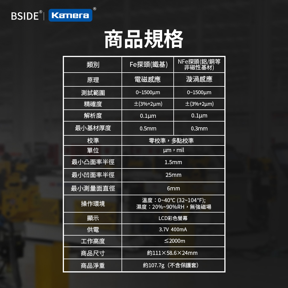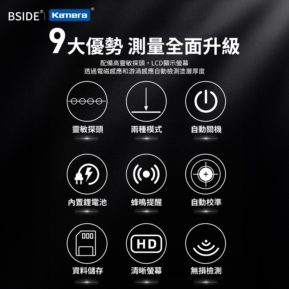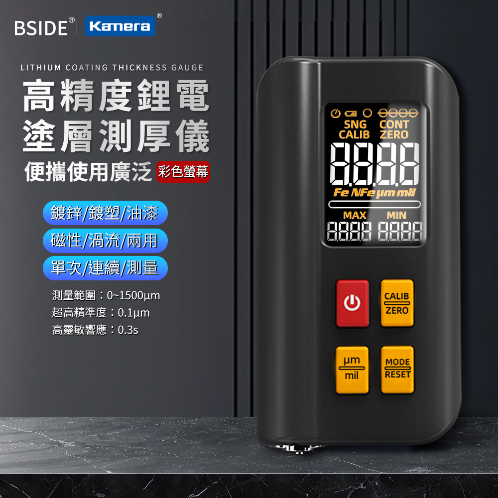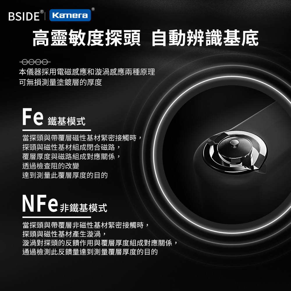 產品特點● 可自動辨識磁性(如鐵)與非磁性(如鋁)金屬基材,對應不同塗層類型,像是汽車烤漆、金屬防鏽層等都能輕鬆測量。● 採用內建 3.7V 鋰電池設計,省去更換電池的麻煩,一次充電可長時間使用,提升便利性。● 配備 1.94 吋 LCD 螢幕,讀值清楚易辨,避免因判讀錯誤而導致檢測失準。● 隨附多片透明校準片及鐵/鋁基材,方便用戶進行日常校正,確保每次測量的準確性與穩定性。● 機身輕量、外型簡約,ABS 材質兼具輕盈與耐用,無論是現場檢修或隨身攜帶都方便。● 操作直覺,初學者也能快速上手。免繁瑣設定,開機即可使用,讓汽車美容、二手車買賣等場景快速進行塗層檢查。