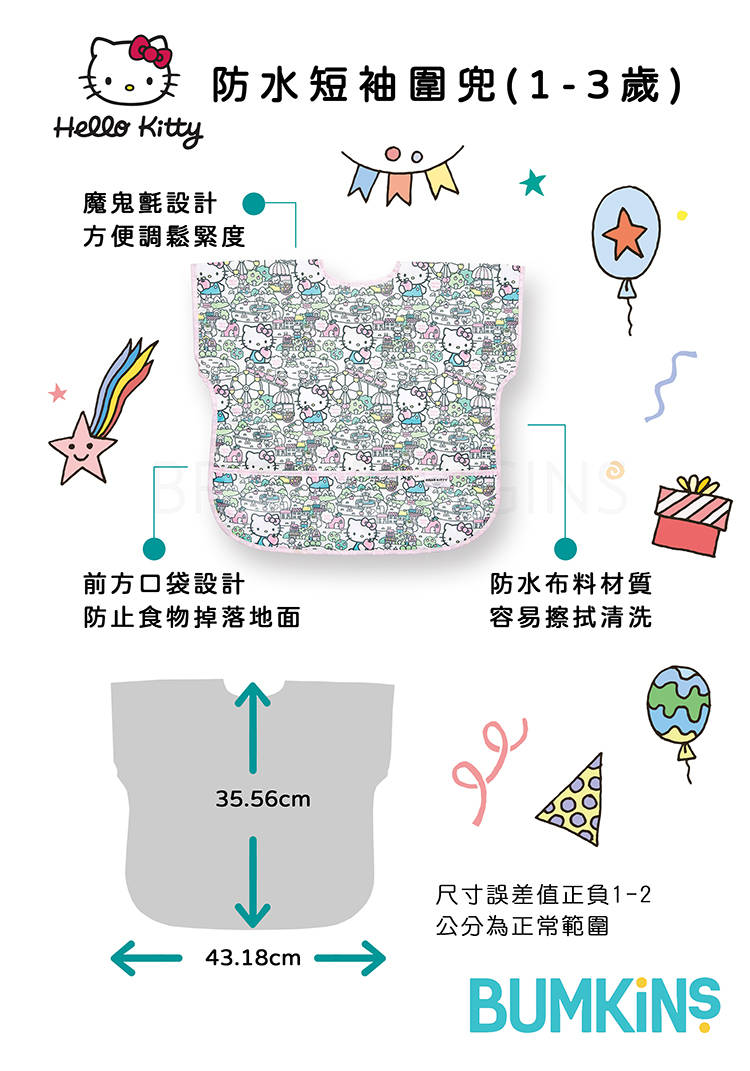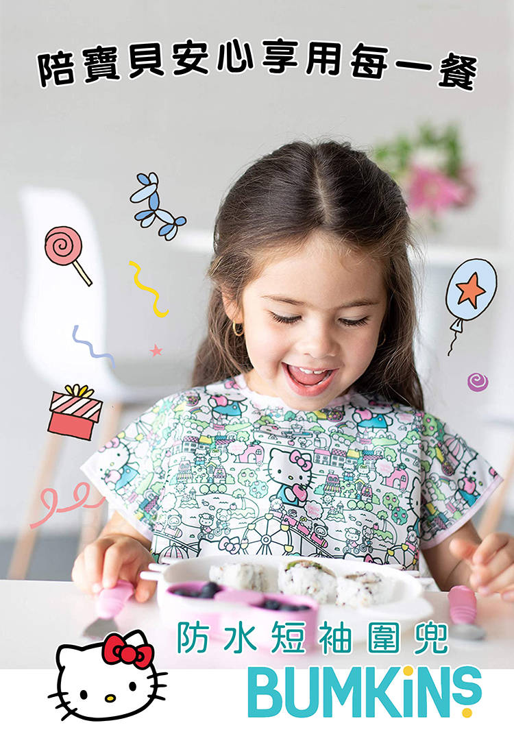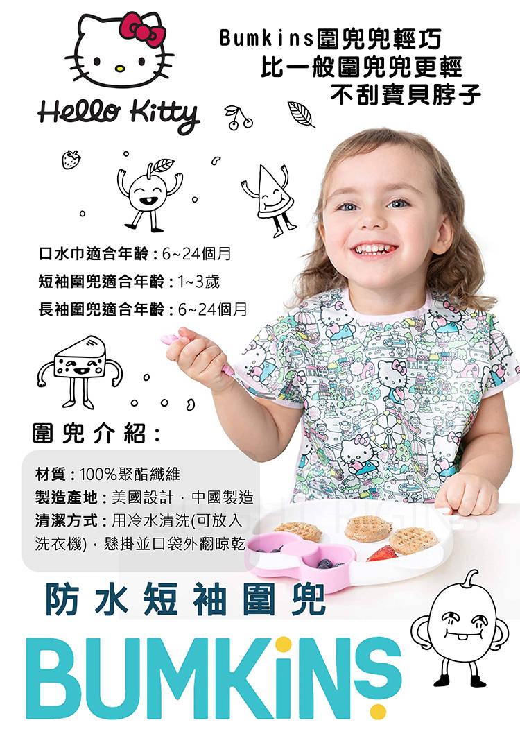 Bumkins 防水短袖圍兜兜-Hello Kitty
