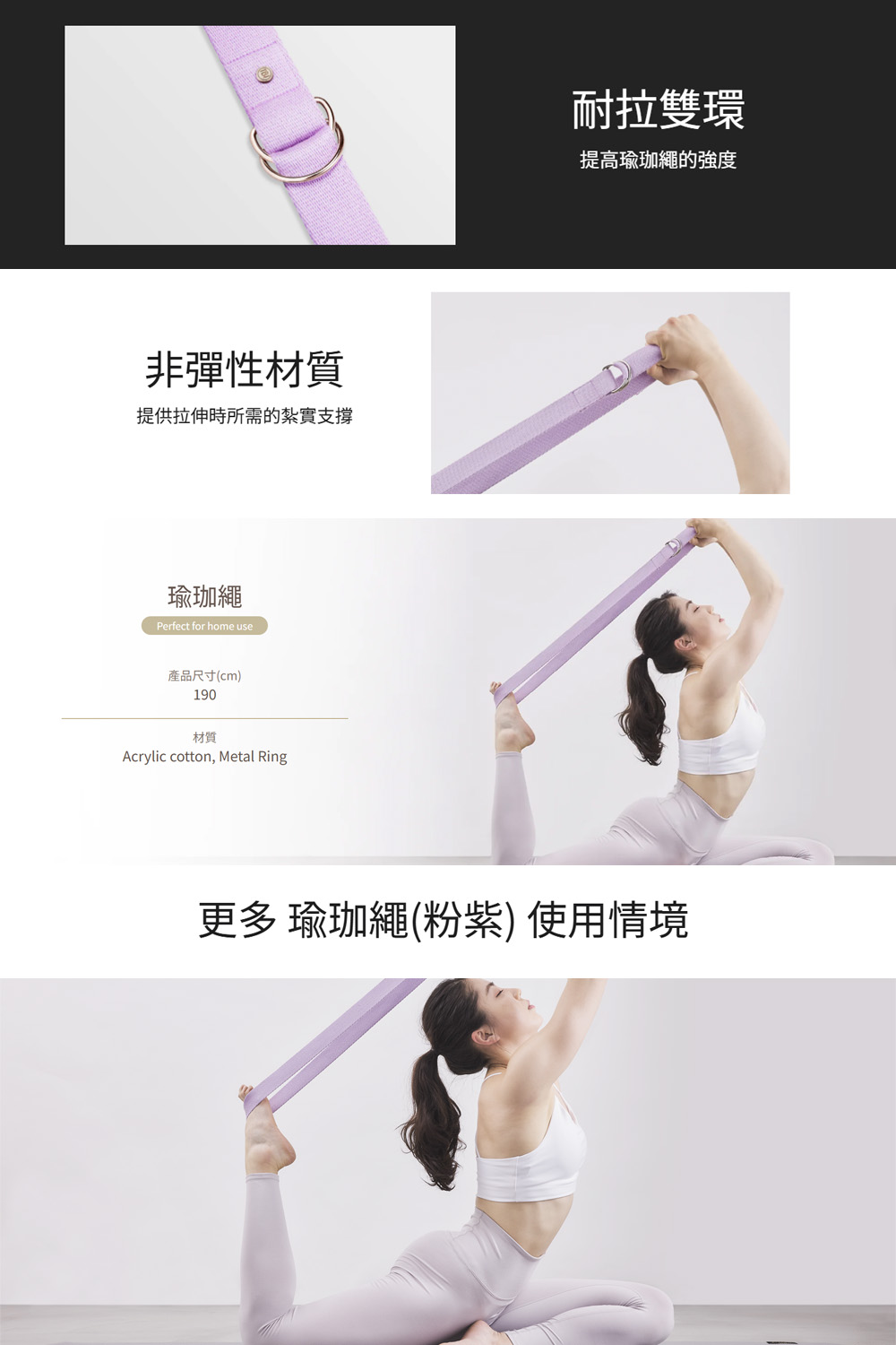 高強度耐拉雙環,提高瑜珈繩的強度。