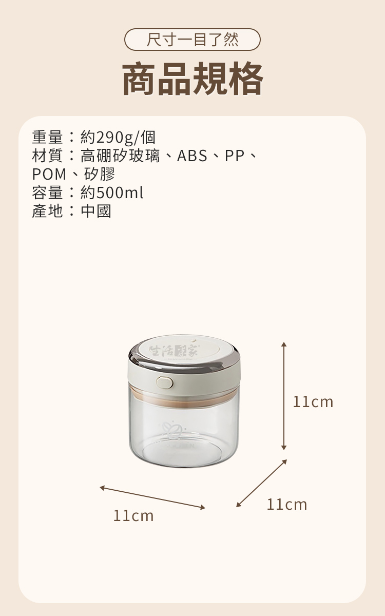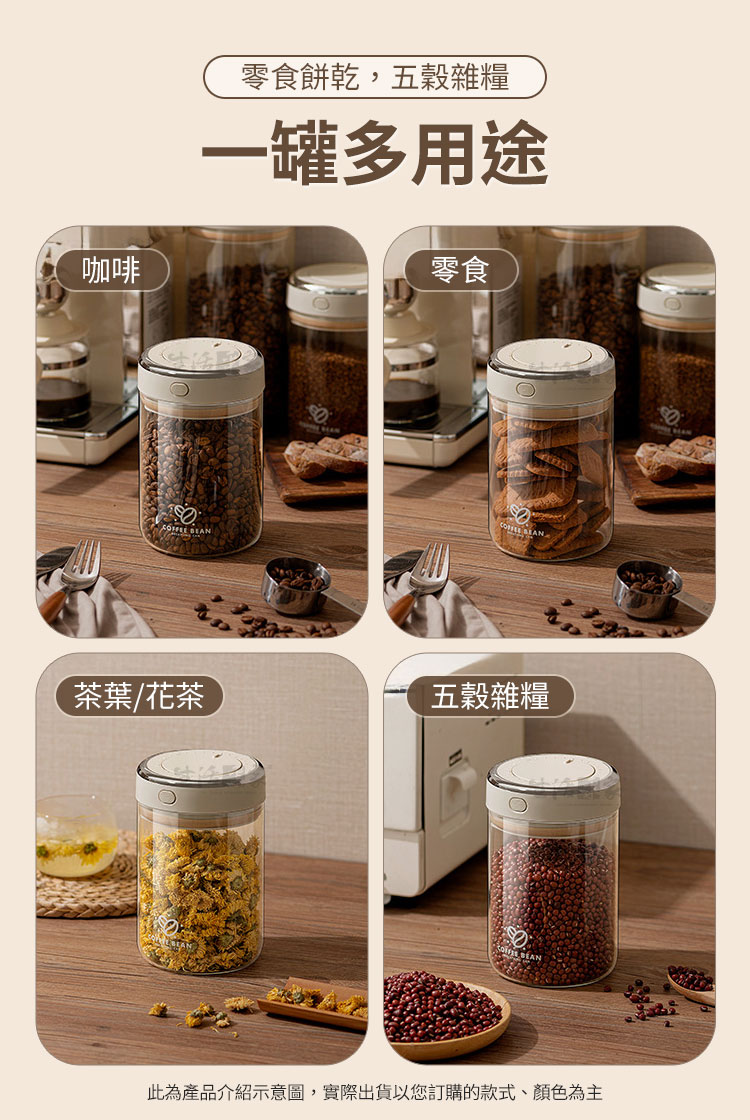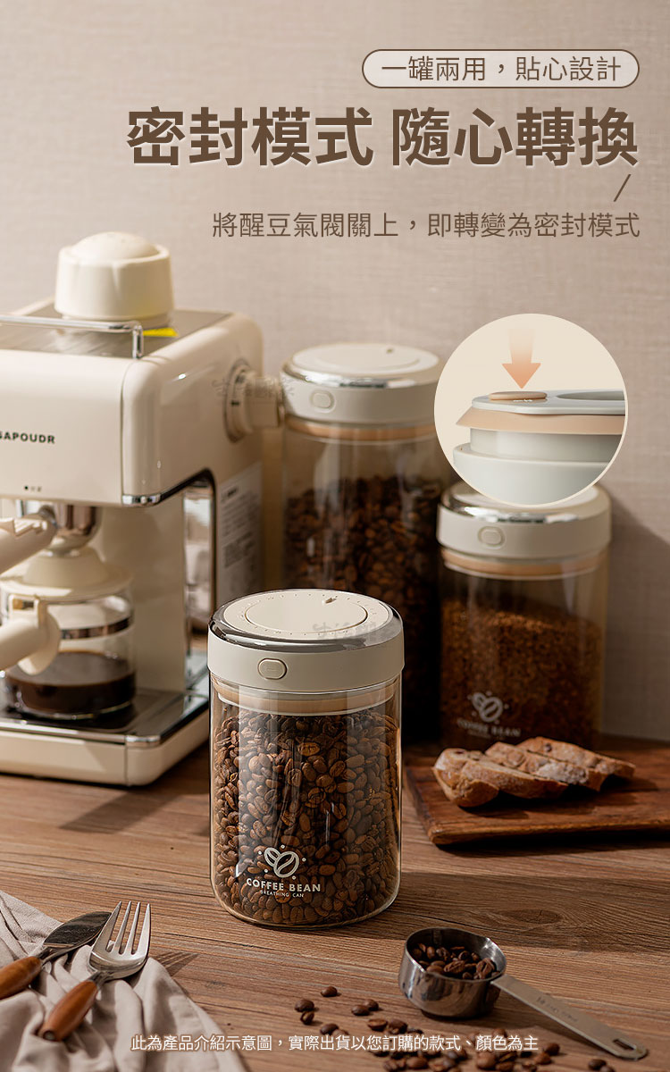 我每天都能喝到新鮮的好咖啡!☕💕以前總覺得家裡的咖啡豆放久了就會變味,明明剛買的時候香氣濃郁,沖泡出來卻總是少了點層次感而風味變得苦澀又不均勻。後來才知道,咖啡豆烘焙後會釋放二氧化碳,如果沒有好好醒豆或密封,香氣和風味都會流失!😱 自從入手這款會呼吸的「咖啡豆真空密封罐」,我的咖啡體驗真的完全升級了!☕ 貼心醒豆模式,讓咖啡風味更迷人!密封罐有醒豆閥,只要打開它,就能讓咖啡豆自然排出二氧化碳,3~5天後醒豆完成,香氣更濃,味道更圓潤順口! 每天沖泡時,光是聞到那股濃郁的咖啡香,就覺得超幸福!😍🔒 一鍵密封,完美鎖住新鮮!醒豆完成後,只要按下密封鍵,就能排出氣氣,罐內瞬間變成密封狀態,防潮又防氧化。以前遇到梅雨季節,咖啡豆很容易受潮變味,但這款密封罐完全沒有這個問題,每次沖泡都像剛開封的新鮮感!✨📅 內建日期轉盤,不再忘記最佳賞味期!我有時候一次會買好幾包咖啡豆,存放太久就會忘記哪包是新鮮的,哪包該先喝。這款密封罐有日期轉盤,直接標記存放日期,現在沖咖啡時一目了然,不用擔心喝到放太久的豆子!🛡️ 密封防漏,倒置也不怕漏氣!蓋子搭配的矽膠密封圈很厚實,不管怎麼擺放都不會漏氣,密封效果超好!而且比起塑膠罐,高硼矽耐熱玻璃更安心,清洗時用熱水沖一沖就乾淨了,完全不殘留異味!🍪 一罐多用,咖啡、零食、茶葉通通收納!雖然我是為了咖啡豆買的,但後來發現它真的超萬用! 我用來裝茶葉、零食餅乾、五穀雜糧,甚至花茶、藥材、乾貨,防潮效果一樣完美!從醒豆到密封,每個細節都幫你顧好,讓每一杯咖啡都保持最純粹的香氣和風味!咖啡豆千萬別隨意存放,強力推薦這款會呼吸的「咖啡豆真空密封罐」,讓你每天都能享受最完美的咖啡時光!☕💖🌈 使用後你會發現~有了 CaféDeck 咖啡豆密封罐,你不必擔心咖啡豆受潮、變質、失去香氣。每天早晨打開罐子時,依舊能感受到剛烘焙般的濃郁香味,沖泡出的咖啡醇厚順口。它不僅是收納工具,更是 維持生活質感的小幫手,陪伴你每一杯幸福的咖啡時光。無論你是咖啡新手,還是講究細節的咖啡職人,這款 真空玻璃密封罐 都能讓你的咖啡體驗升級。現在就把它帶回家,讓你的咖啡日常更專業、更美好!☕✨👉 別再讓咖啡豆香氣白白流失,立即入手 CaféDeck 咖啡豆真空玻璃密封罐!#咖啡豆保存 #真空密封罐 #咖啡生活 #精品咖啡器具 #收納美學📣 FAQ (常見問答)Q1:咖啡豆可以放多久?A1:一般建議在1個月內飲用完畢,搭配本密封罐能有效延長鮮度。Q2:可以放茶葉或零食嗎?A2:可以,本罐具備防潮密封設計,茶葉、花茶、五穀雜糧、零食都適用。Q3:玻璃罐耐熱嗎?A3:採用高硼矽玻璃,可耐高溫100℃與低溫-20℃,安全耐用。Q4:如何操作醒豆模式?A4:只需打開氣閥,讓咖啡豆釋放二氧化碳,3~5天即可完成醒豆。Q5:罐子可以放進洗碗機清洗嗎?A5:建議以中性清潔劑手洗,避免強烈碰撞以延長使用壽命。注意事項:1.請勿靠近高溫火源,避免玻璃破裂。2.清洗時建議使用中性清潔劑與柔軟海綿,避免刮傷。3.不可使用於微波爐、烤箱、洗碗機與消毒機。4.使用時避免劇烈碰撞或摔落,以免玻璃破碎。5.初次使用請徹底清洗並擦乾後再放入食材。商品規格:1.尺寸:約寬11*深11*高11cm2.容量:約500ml3.材質:高硼矽玻璃、ABS、PP、POM、矽膠4.重量:約290g/入5.產地:中國6.商品:咖啡豆真空密封罐收納罐 500ml*1※商品為人工丈量略有誤差,請以實品為準。※網頁圖片因拍攝關係或螢幕設定不同而會與實際商品略有色差,請以實際收到商品為準。