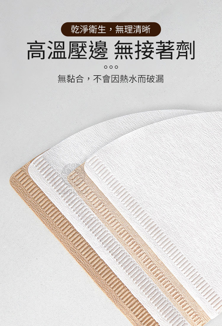 CaféDeck V60錐形原木漿咖啡濾紙|無漂白·高密度·手沖專用濾紙一杯乾淨的咖啡,從濾紙開始~ CaféDeck V60錐形原木漿咖啡濾紙,為講究純粹風味的你而生。採用天然原木漿製成、無漂白無添加,保留最真實的咖啡香氣,讓每一滴萃取都純淨如初。✅ 100%天然原木漿|柔軟韌性佳,不易破損✅ 無漂白無添加|無化學異味、口感更純粹✅ 經典V60錐形結構|延長水與咖啡粉接觸時間,萃取更均勻✅ 高密度濾層|有效過濾細粉,保留香氣不留雜質✅ 高溫壓邊技術|無接著劑、不因熱水鬆脫✅ 可開闔紙盒包裝|取放便利、收納整潔、質感滿分☕ 【使用方式】輕鬆四步沖出完美香氣1.將濾紙放入V60濾杯並以熱水潤濕2.倒入研磨好的咖啡粉3.注入約90°C熱水,靜置15秒悶蒸4.以繞圈方式注水至萃取完成,即可享受香濃咖啡💡 小提醒: 沖泡前可先潤濕濾紙,有助於去除木質氣味並預熱濾杯。🌸使用後你會發現~☕ 沖煮過程流速穩定,香氣自然釋放🌿 咖啡液乾淨透亮,無粉渣🏡 每一次手沖,都是家的儀式感💡 【適用對象】✔️ 手沖咖啡初學者✔️ 咖啡愛好者與居家沖煮族✔️ 注重純淨風味與濾紙材質安全的使用者☕ 一起用CaféDeck,沖出生活的美好香氣。#CaféDeck #手沖咖啡 #V60濾紙 #原木漿濾紙 #咖啡生活📣 FAQ (常見問答)Q1:這款濾紙有經過漂白嗎?A1:沒有。本產品使用100%天然原木漿,無漂白、無添加,安心沖煮不影響風味。Q2:是否適用於Hario V60濾杯?A2:是的!本品為V60錐形設計,可完美貼合Hario、KONO、Kalita等多品牌濾杯。Q3:濾紙尺寸有分嗎?A3:有,V01適用1~2杯,V02適用2~4杯,請依個人沖煮量選購。Q4:會有紙味影響咖啡嗎?A4:建議使用前以熱水預浸濾紙,可去除微量木漿氣味並預熱濾杯,風味更穩定。Q5:包裝是否方便收納?A5:「可開闔盒設計」,取用方便不散落,直接放置桌面也美觀。注意事項:1.使用前建議以熱水沖洗濾紙,可去除自然木漿味。2.請避免放置於潮濕或高溫環境。3.濾紙為一次性使用,請勿重複使用以免影響風味。4.請依濾杯尺寸選擇對應規格(V01或V02)。5.使用後請妥善丟棄並保持濾杯清潔,延長器具壽命。