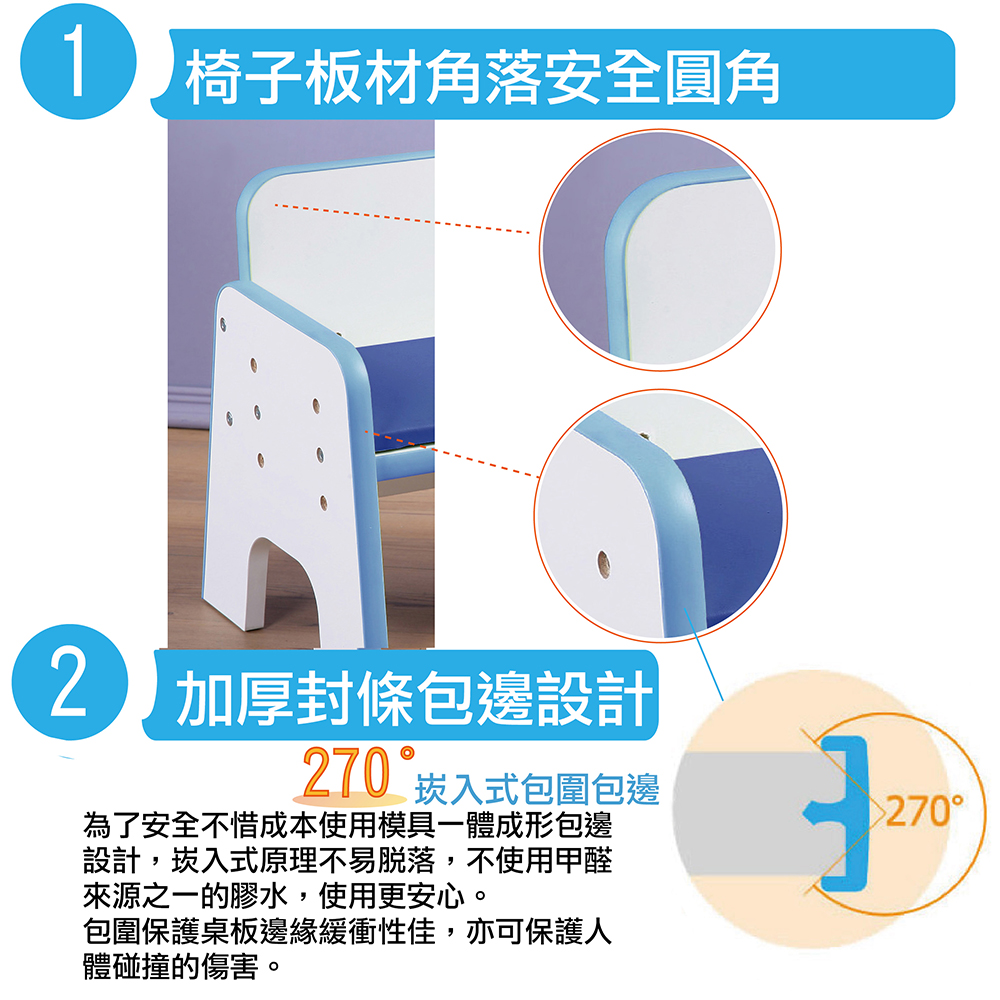 孩子的成長只有一次,《創意小天才》兒童專用調節椅風行了好幾代,我們總是在思考學會走路以後到學齡前的小童到底需要甚麼樣的椅子,有了創意小天才數代的經驗,與創意小天才系出同源的《創意小天才》小童遊戲成長椅於焉誕生囉!在寶寶到了需要離開父母的懷抱學著自我探索的階段,遊戲成長桌就成為家中必要的設備了,與桌子相同風格用途相互對應的椅子也是極其重要。對於成長椅而言,坐墊的高度可因孩子的身型變化而調整使其符合桌子的高度是第一要素。因此我們將椅子設計了20公分、24公分、28公分共三種座面高度可以讓您隨時調整,不必因為孩子成長而不斷地更換椅子,對於有兩個孩子的家庭或計畫生第二個或第三個孩子的家庭也因可以共用是很貼心的設計。在家裡幫孩子布置一個屬於自己的空間,準備一套符合孩子成長便於孩子使用的桌椅真的很重要,遊戲、畫畫、勞作、用餐、學習、閱讀,您能陪伴和傾聽,養成孩子能在自己空間活動的習慣,培養親子感情並對家庭產生認同,認知這是我的家、我是家裡的一份子!《創意小天才》小童遊戲成長椅,採用甲醛釋放量符合歐美規定使用的E0與P2等級安心板材,表面都採圓角處理,邊緣則使用加厚的T型邊條包邊處理安全性足夠讓您用得安心與自在。椅子的重心設計得極低,座面輕微往後傾斜,避免部分孩子因坐得太淺而向前翹起,左右兩側板材採梯形的穩固設計,加上底下拱式造型,在孩子分不清安全和危險動作之時,亦或是在孩子平衡感還不是很好的時候,可防止往後傾倒的問題,用料實在有一定的重量,孩子無法輕易移動也不用擔心因為太輕而碰撞翻倒喔,讓孩子坐起來穩固又安全。此外,座面是鋪附著泡棉的合成皮革軟墊,讓孩子坐起來不會堅硬痛楚,不影響骨骼發育。椅腳底下也貼心地貼著絨布墊,可防止因移動而對地面甚至木質地板所造成的刮傷,是一組簡約、耐用又實用的椅子喔!■商品規格: 尺寸 : 約寬37*深33*高40CM 座面高共三段:20公分、24公分、28公分材質 : E0+P2等級進口安心塑合板表面玻麗處理、合成皮革、泡棉 產地 : 台灣 ■注意事項 1.本商品附詳細組裝說明書,需DIY自行組裝。 2.DIY商品經組裝後恕不接受退貨,請先確認商品是否符合要求。 3.商品圖檔顏色因電腦螢幕設定差異會略有不同,請以收到的實際商品顏色為準。 4.若需退貨,請保持商品及包裝之完整性,無法回復原出貨之完整包裝恕不接受退換貨。 5.送達地點有否限制:限本島,外島須外加運費。我們將事先與消費者聯繫報價,議定外島運費後,訂單始成立。 6.本島偏遠地區接單說明:本島的偏遠地區接單須另加聯運費。我們將事先與消費者聯繫報價,議定聯運費後,訂單始成立。 7.鑑賞期限制說明:溫馨提醒,鑑賞期非試用期, 敬請確認商品無瑕庛問題並確認購買後再使用。 8.收到貨品時,要將外箱保留至鑑賞期結束,不要讓貨運公司將外箱帶走,換貨時換貨商品必須是全新狀態(不得有刮傷),並有完整的包裝,包含外紙箱、配件紙箱、保麗龍、保護袋、贈品等所有附隨文件或資料之完整性。