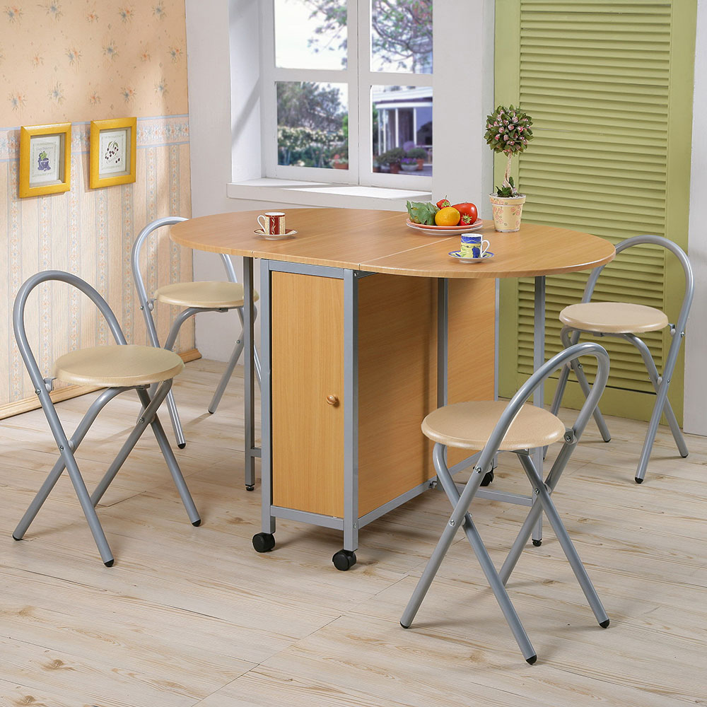 《C&B》橢圓折疊多用途蝴蝶桌椅組(一桌+四椅)