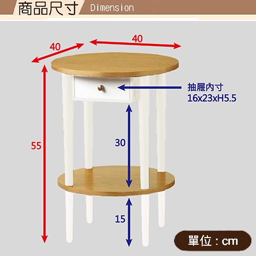 ■商品規格 尺寸 : 約寬40x深40x高55CM 抽屜內寸: 寬16x深23x高5.5CM 主要材質 : MDF板、實木 產地 : 台灣 ■注意事項 1.本商品附詳細組裝說明書,需DIY自行組裝。 2.DIY商品經組裝後恕不接受退貨,請先確認商品是否符合要求。 3.商品圖檔顏色因電腦螢幕設定差異會略有不同,請以收到的實際商品顏色為準。 4.若需退貨,請保持商品及包裝之完整性,無法回復原出貨之完整包裝恕不接受退換貨。 5.送達地點有否限制:限本島,外島須外加運費。我們將事先與消費者聯繫報價,議定外島運費後,訂單始成立。 6.本島偏遠地區接單說明:物流業者定義之本島偏遠地區接單須另加聯運費。我們將事先與消費者聯繫報價,議定聯運費後,訂單始成立。 7.鑑賞期限制說明:溫馨提醒,鑑賞期非試用期, 敬請確認商品無瑕庛問題並確認購買後再使用。 8.收到貨品時,要將外箱保留至鑑賞期結束,不要讓貨運公司將外箱帶走,換貨時換貨商品必須是全新狀態(不得有刮傷),並有完整的包裝,包含外紙箱、配件紙箱、保麗龍、保護袋、贈品等所有附隨文件或資料之完整性。 9.偏遠地區概略表:以下地區為物流公司定義之偏遠地區概略(實際以貨運公司定義為準)。 (1).新竹:尖石鄉、五峰鄉 (2).苗栗:泰安鄉 (3).台中:梨山、谷關、環山、和平鄉 (4).南投:鹿谷鄉、信義鄉、仁愛鄉 (5).雲林:古坑鄉 (6).嘉義:阿里山鄉、梅山鄉、嘉義農場 (7).高雄:內門鄉、杉林鄉、甲仙鄉、六龜鄉、甲仙鄉(小林村)、六龜鄉(寶來村) (8).屏東:霧台鄉、春日鄉、泰武鄉、三地門鄉 (9).宜蘭:大同鄉、南澳鄉 (10).花蓮:秀林鄉、池上鄉、海端鄉 (11).台東:長濱鄉、東河鄉(北源村)、台東地區(牧場&監獄)