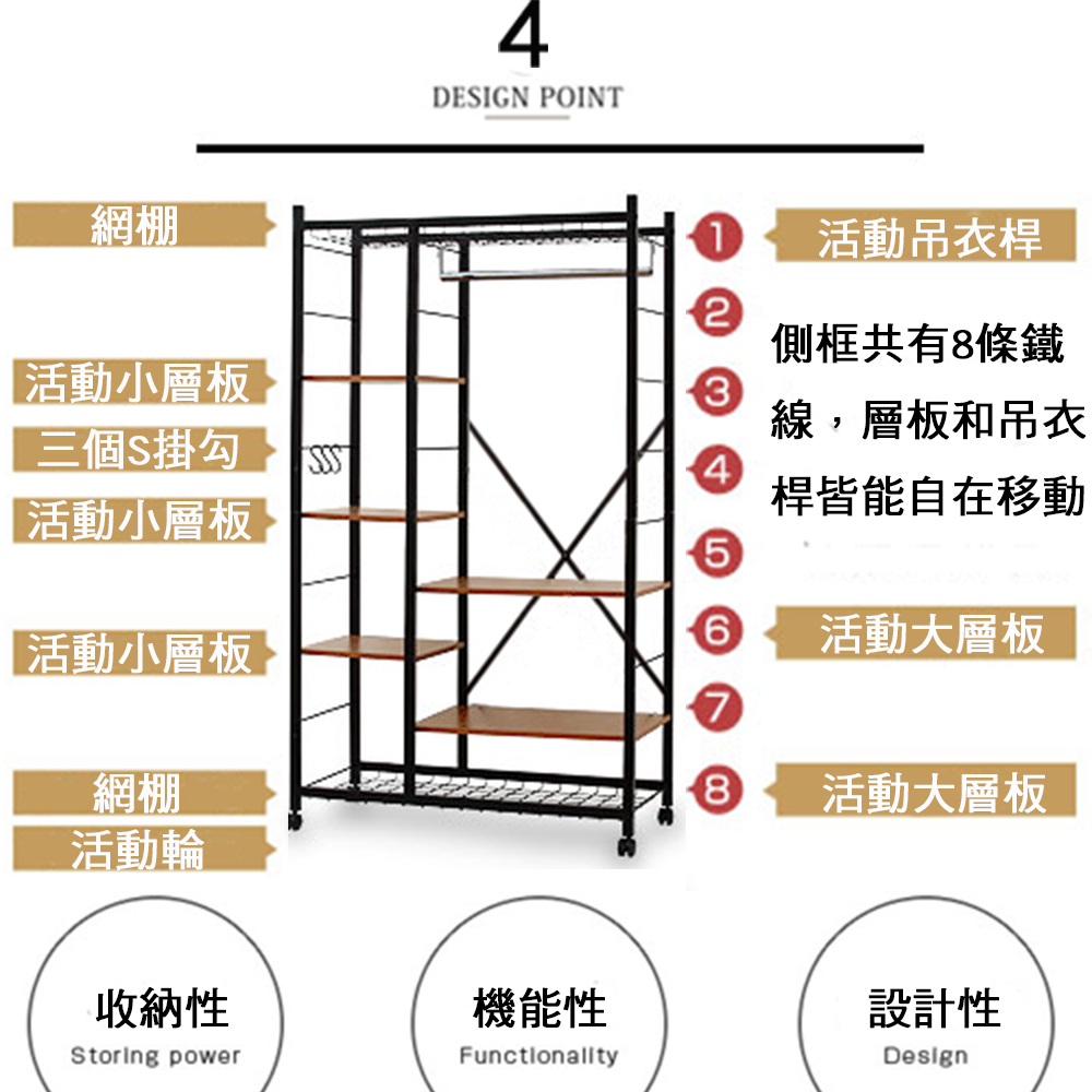 《C&B》Justice移動式置物衣櫥架-寬93cm(台灣生產)