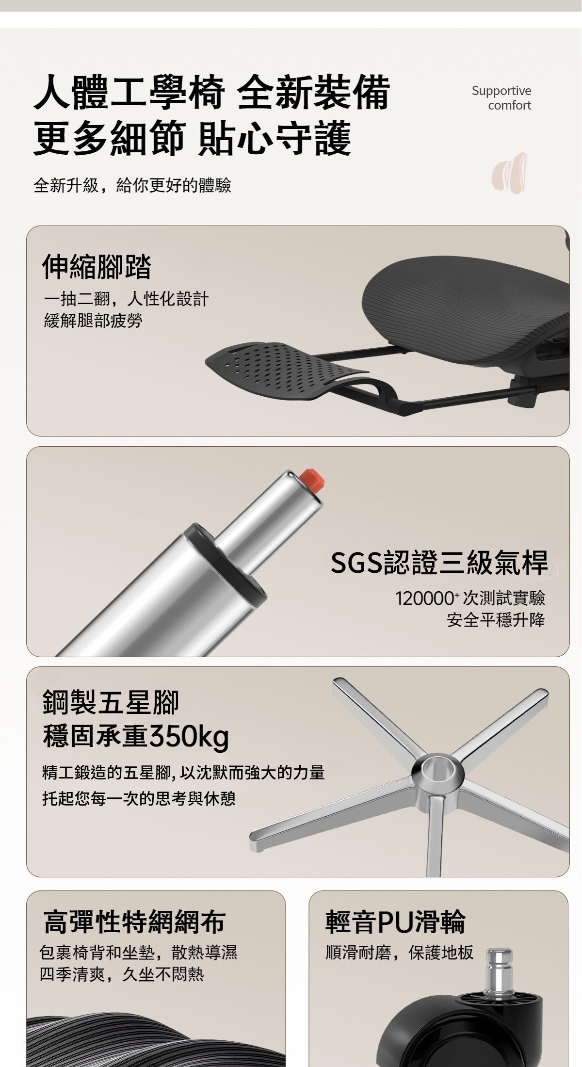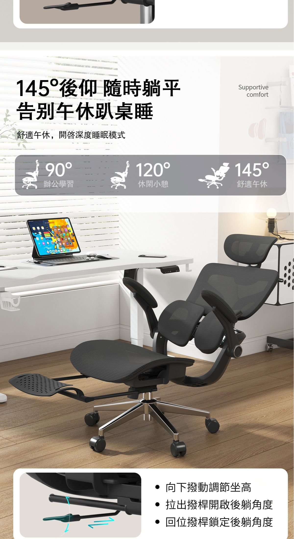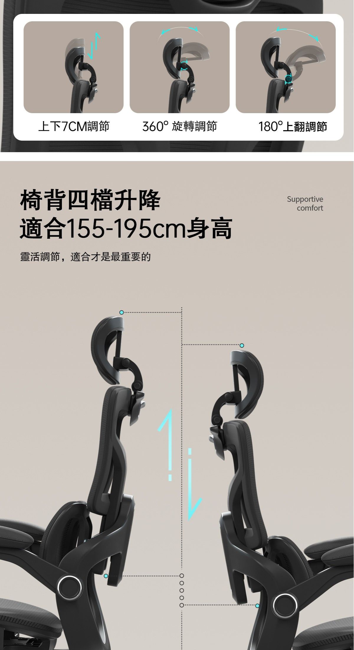 -椅背四檔升降,適應不同身高人群