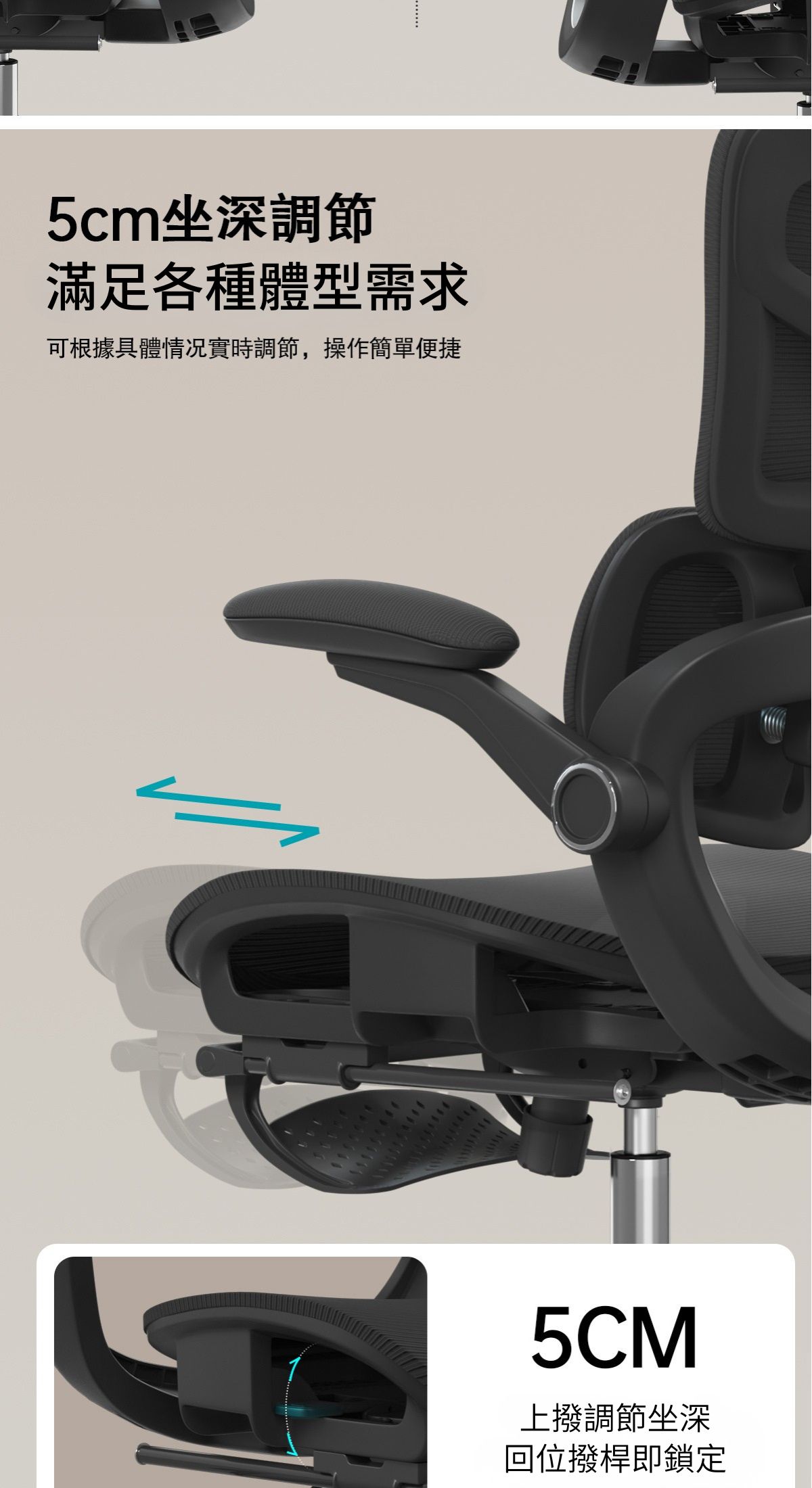-坐深可調節5CM,增加大腿與坐墊的接觸面