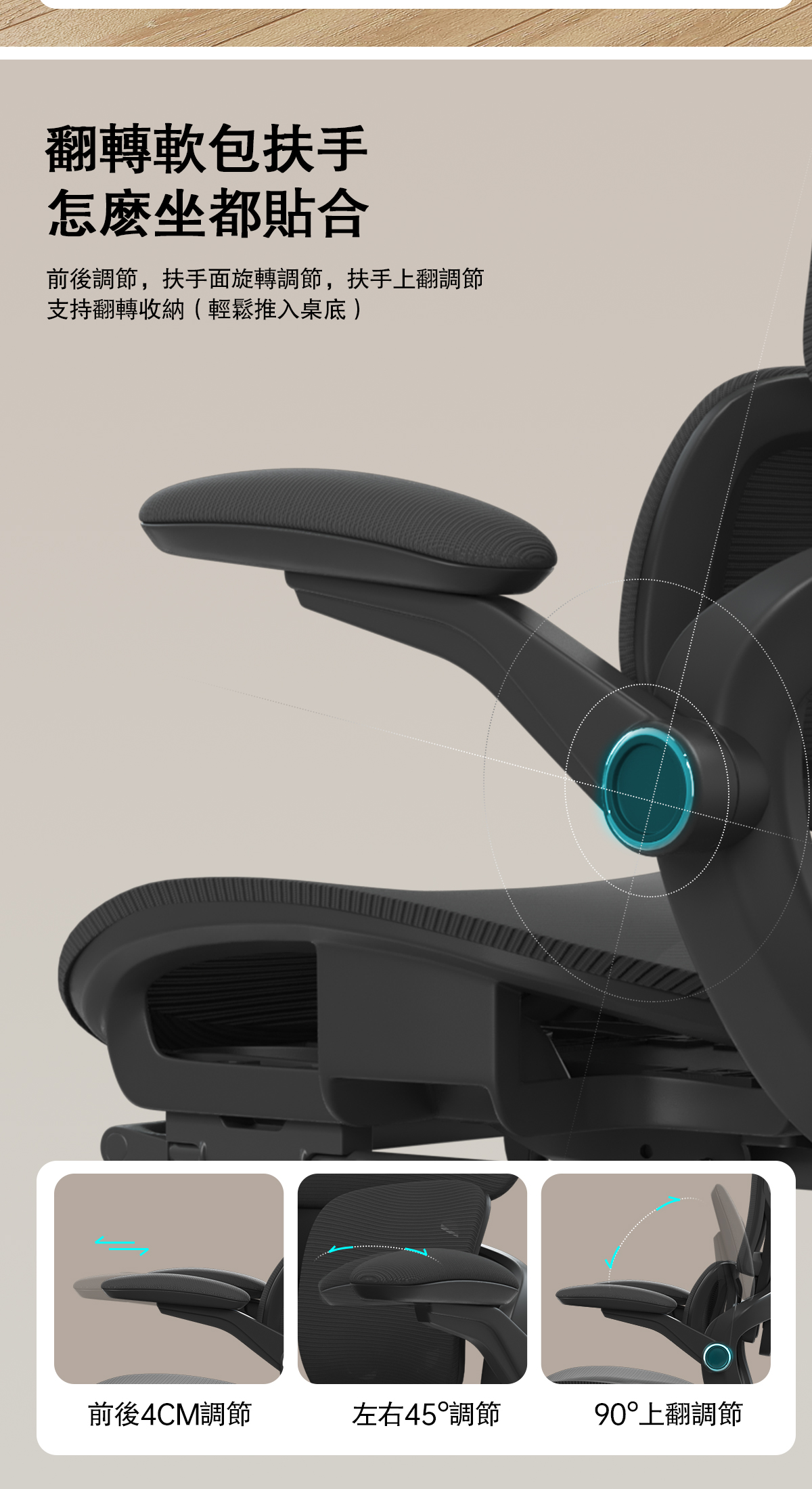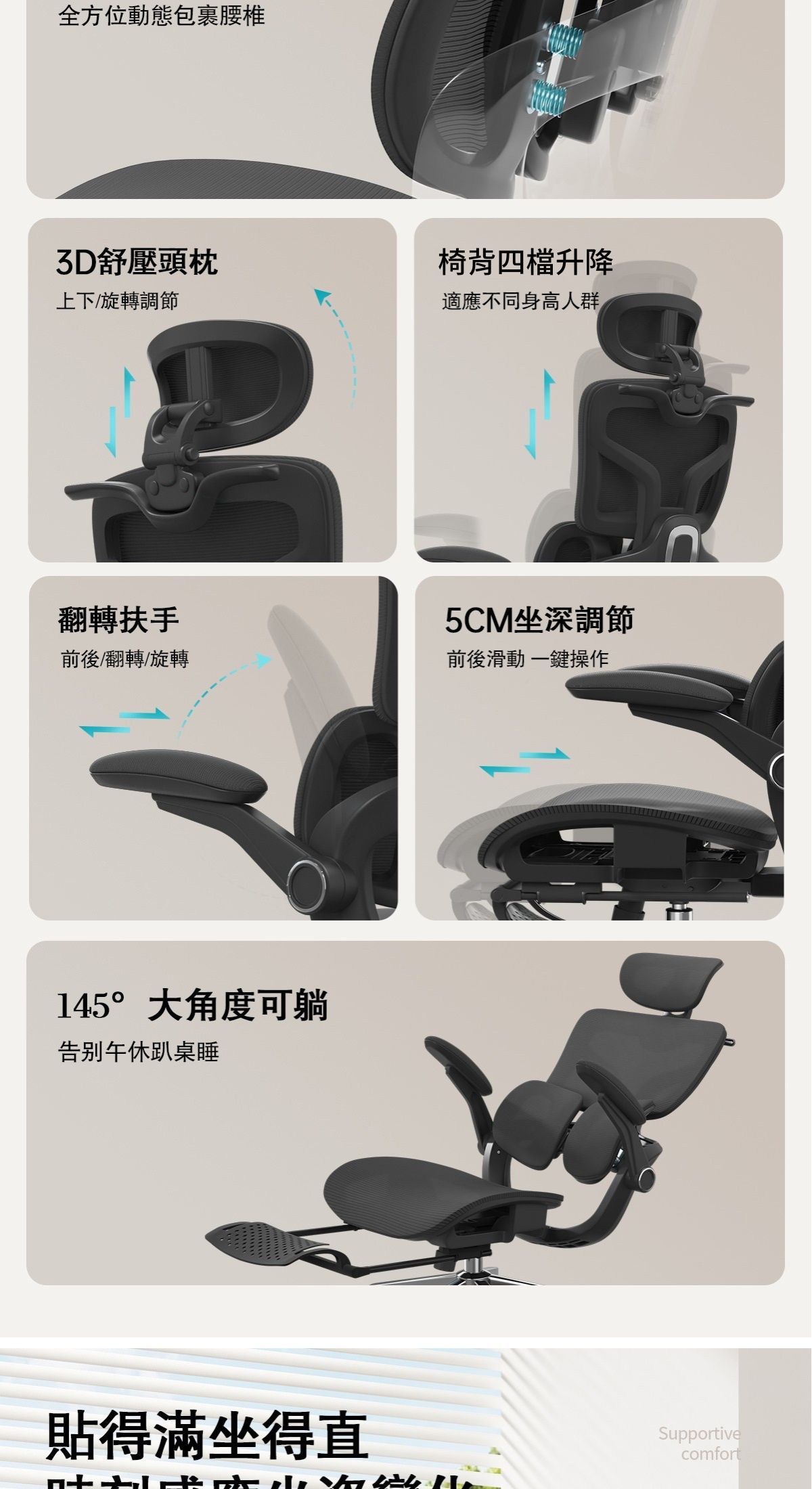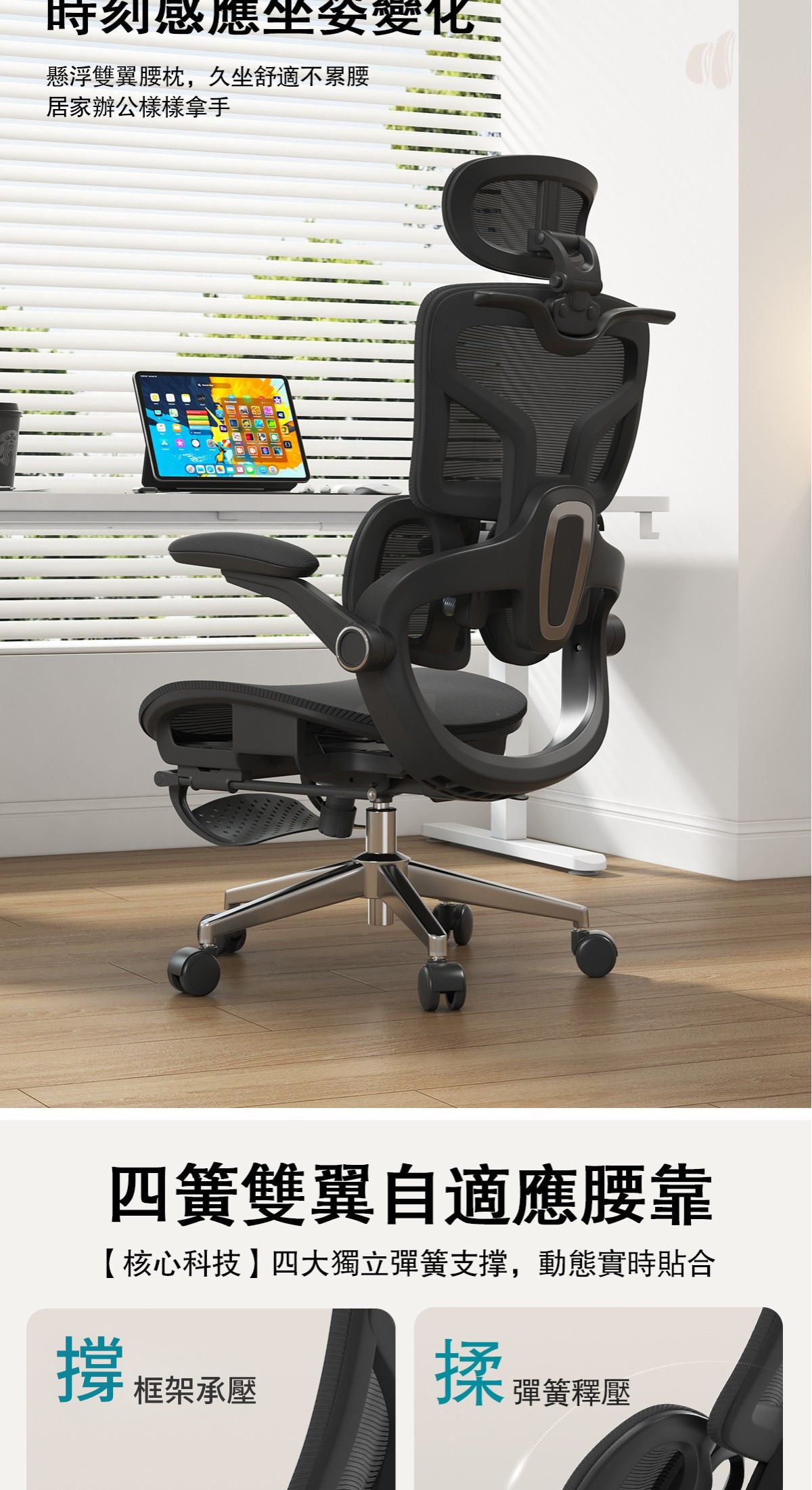 -雙翼自適應靠腰,舒適貼合