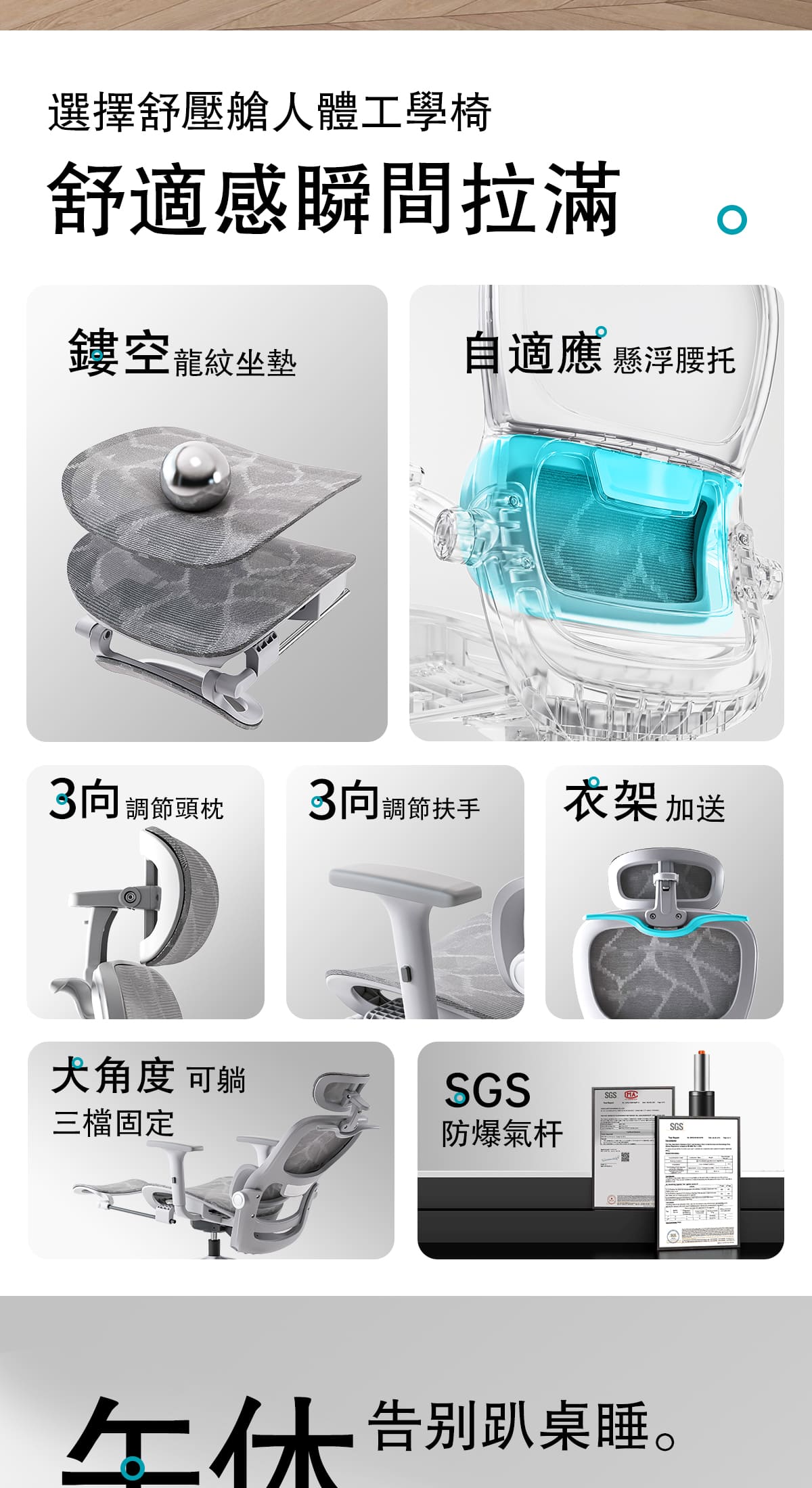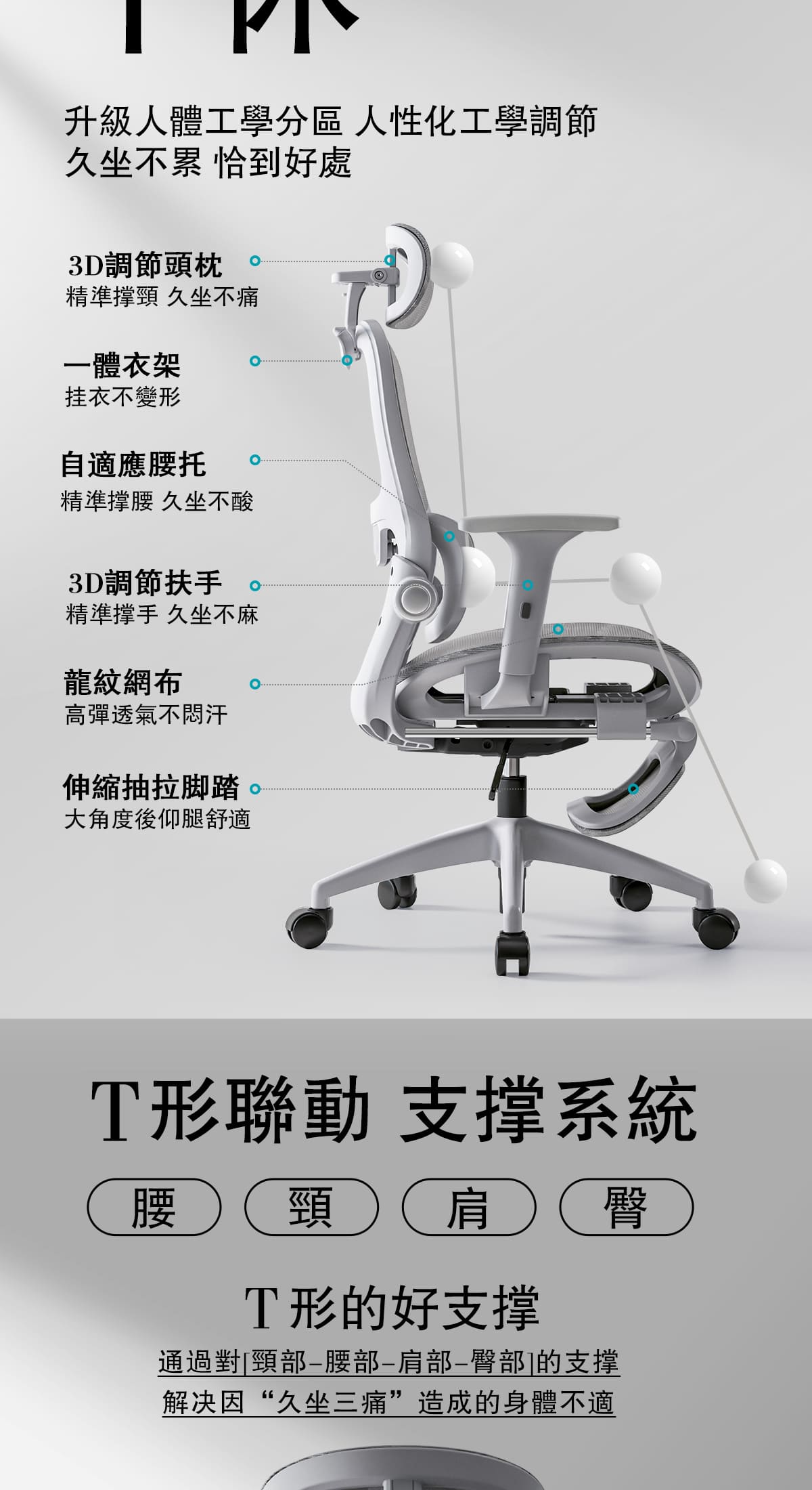 -椅背T形聯動,解決久坐三痛的不適