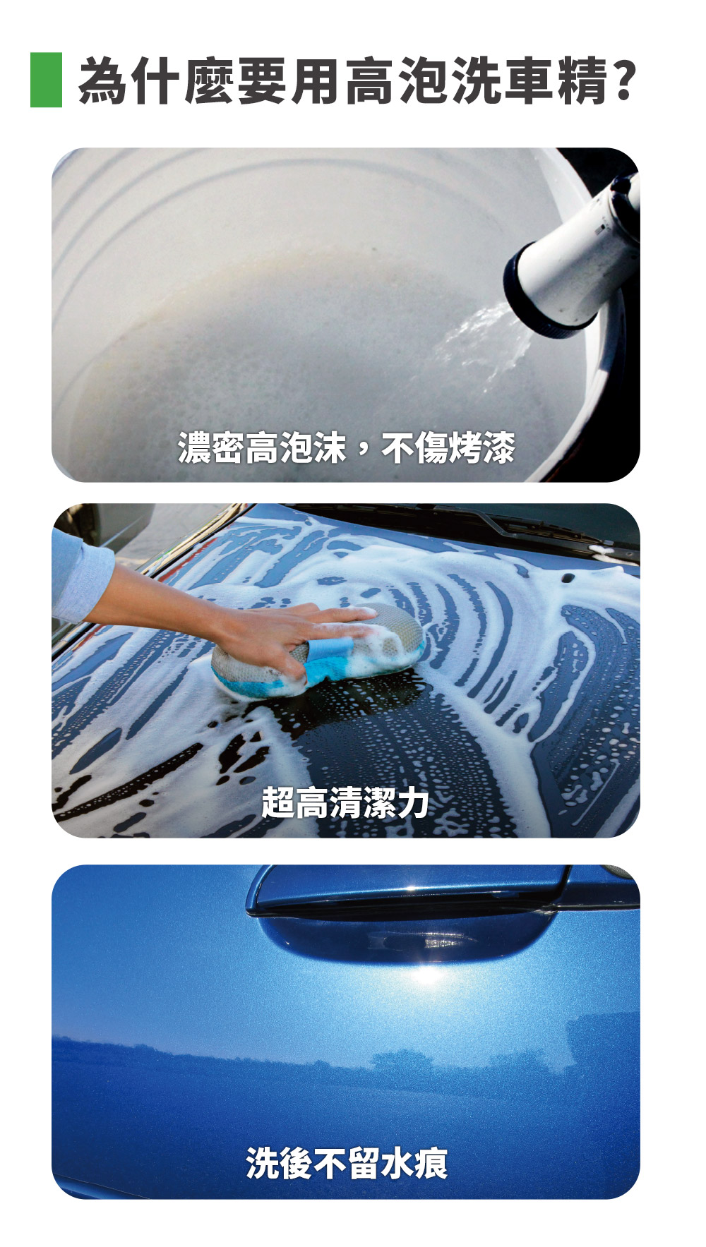 商品介紹. 有效清潔車身所有交通膜、灰塵、油污和頑垢。. 濃密高泡沫洗淨深層污垢,清洗後不留水痕。. 適合所有外部表面和漆面處理。. 可手動清洗或搭配高壓清洗機,產生濃密泡沫。