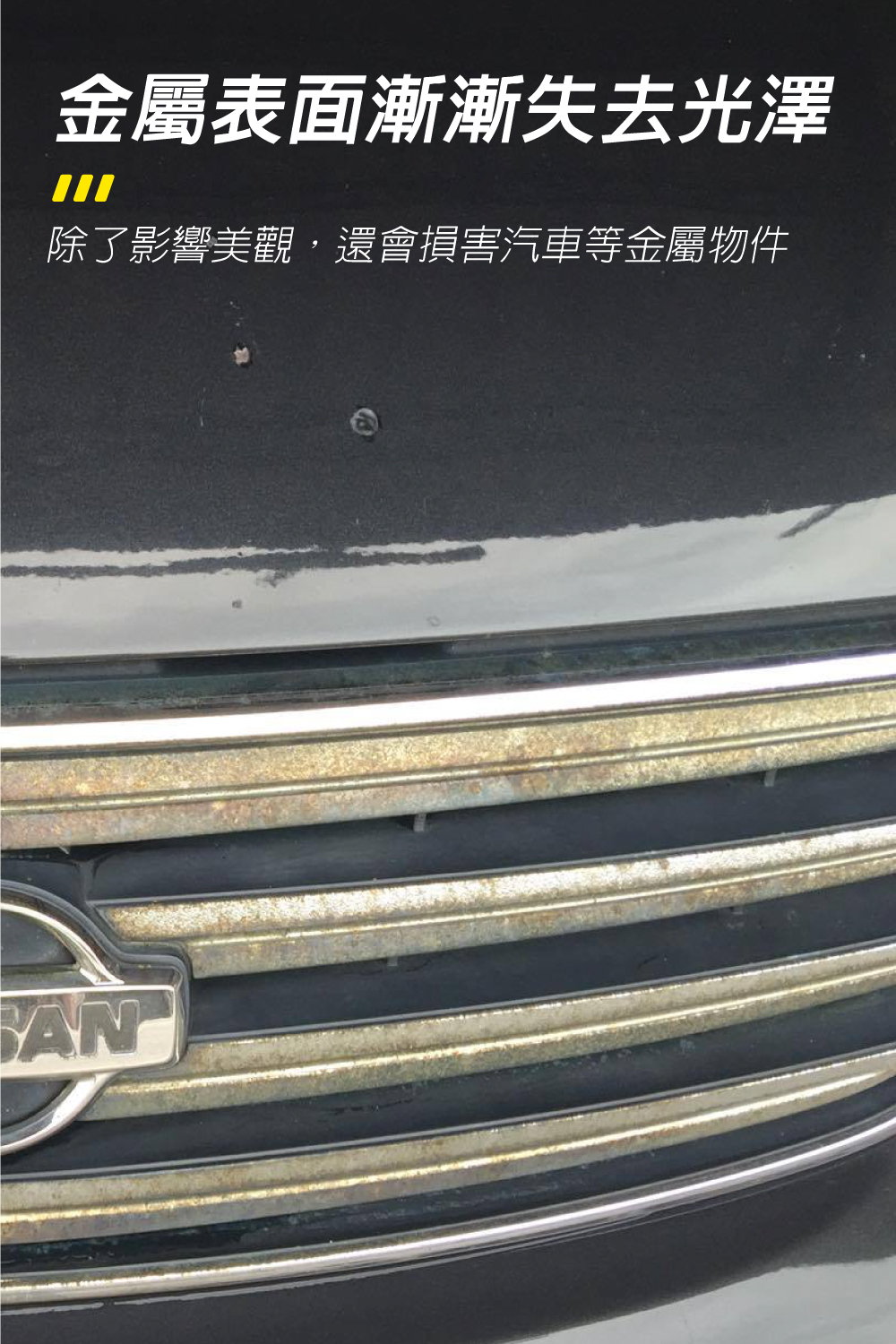 隨著鍍鉻技術的進步,車輛有愈來愈多的部品採用鍍鉻製程加工,像是、大燈、水箱護罩、門鏡、鍍鉻手把、排氣管、門檻飾條、車身飾條、防撞側條、鍍鉻鋁圈等,閃亮的質感更添高級奢華的風範,不過時間一久難免會失去光澤,甚至出現鏽斑的情形,又不敢亂擦怕會刮傷表面,車主都不知要如何保養鍍鉻的飾品,往往等到生鏽、氧化、水垢、失去光澤,才會想要到要保養它,但又找不到好用的保養品,現在推薦您 "T-CUT Metal Polish 金屬拋光劑"讓您快速清潔和保養,恢復金屬原有的光澤。商品介紹‧ 用來清潔、恢復和拋光金屬表面,去除金屬表面生鏽、污點和氧化,即使金屬多年沒被清潔保養仍能發揮效用。‧ 能夠恢復出色光澤,同時保護免受變色和變質的威脅。‧ 適合所有金屬應用,包括鉻、銅、不銹鋼、鎳銅、鋁、合金等多種金屬。‧ 適用於汽車、摩托車、船舶、運動與休閒、家用電器和一般家庭使用。使用方式1.擠出適量產品於軟布,塗抹在需清潔的區域。2.在表面推磨拋光,也可以用硬毛刷子。3.用另一塊軟布擦亮,如有需要可以重複使用。4.任何殘留會影響亮光,請將其擦拭乾淨。觀看影片了解如何操作T-Cut Original Metal Polish 金屬拋光劑規格說明‧ 品牌:CarPlan 卡派爾‧ 品名:T-CUT Metal Polish 金屬拋光劑‧ 包裝:150g‧ 製造商:英國Tetrosyl公司‧ 產地:英國注意事項‧ 歐洲車飾條不是採鍍鉻材質,而是鋁合金材質+一層薄薄的金油層,鋁合金氧化不適用。‧ 在使用之前先在不顯眼區域做測試,檢查相容性。‧ 不推薦使用在鏡面處理表面,如鏡面鋁圈、鏡面摩托車飾條和鍍鉻鏡面塑件。‧ 請避免讓孩童接觸,若不慎觸及眼睛請以大量清水沖洗並就醫檢查。