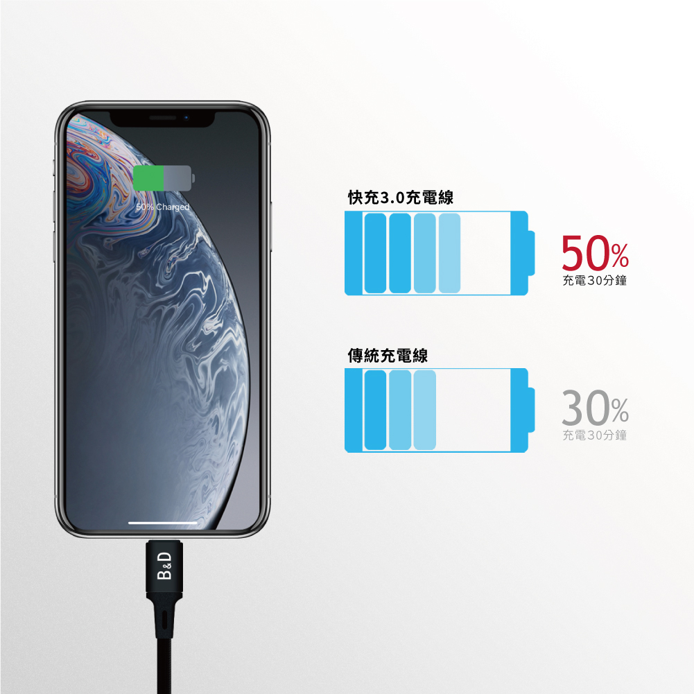 這款充電線通過提供9V/2A充電電源來加速充電速度,比大多數充電線充電更快,減少您花在等待設備滿電的時間,並且在嚴格的實驗室測試已經通過認證。