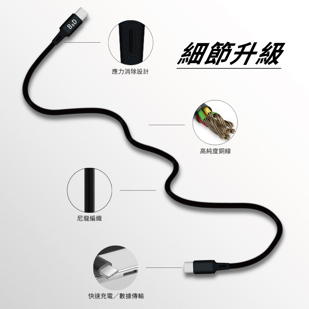 3.3ft(約1米)尼龍編織線,方便隨身攜帶,適合在車內、家裡、辦公室和戶外使用,讓您隨時隨地享受數據同步和充電。