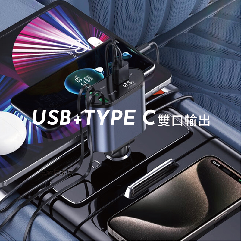 🚗 為什麼你需要這款車充?✅ 120W大功率快充,支援 QC3.0快充協議,手機、平板、筆電、行車記錄器,一次搞定!✅ 內建雙線可伸縮:Type-C + Lightning 80cm長度隨拉隨用,告別纏線煩惱!✅ USB + Type-C雙孔擴展:滿足車內多設備充電需求!✅ 智慧晶片控溫,內建智慧晶片,六重安全防護,低溫不傷機,穩定輸出更安全!✅ LED電壓顯示,隨時掌握愛車電壓狀況,避免電瓶沒電!✅ 12V/24V車型通用,不管是小轎車、SUV、還是貨車都能用!✅ QC3.0快充協議,支援多種設備,充電速度翻倍提升!✅ 隨插即充 — 無需對準,輕鬆補電✅ 多設備同時充電 — 手機平板同時充電不等待✅ 智能電流調節,快充不傷機,電量滿格超省心✅ 免挖孔設計,安裝超簡單!✅ 牢固不掉電:顛簸路況依然穩定輸出,ABS+PC材質抗摔又耐用,行車更安心!