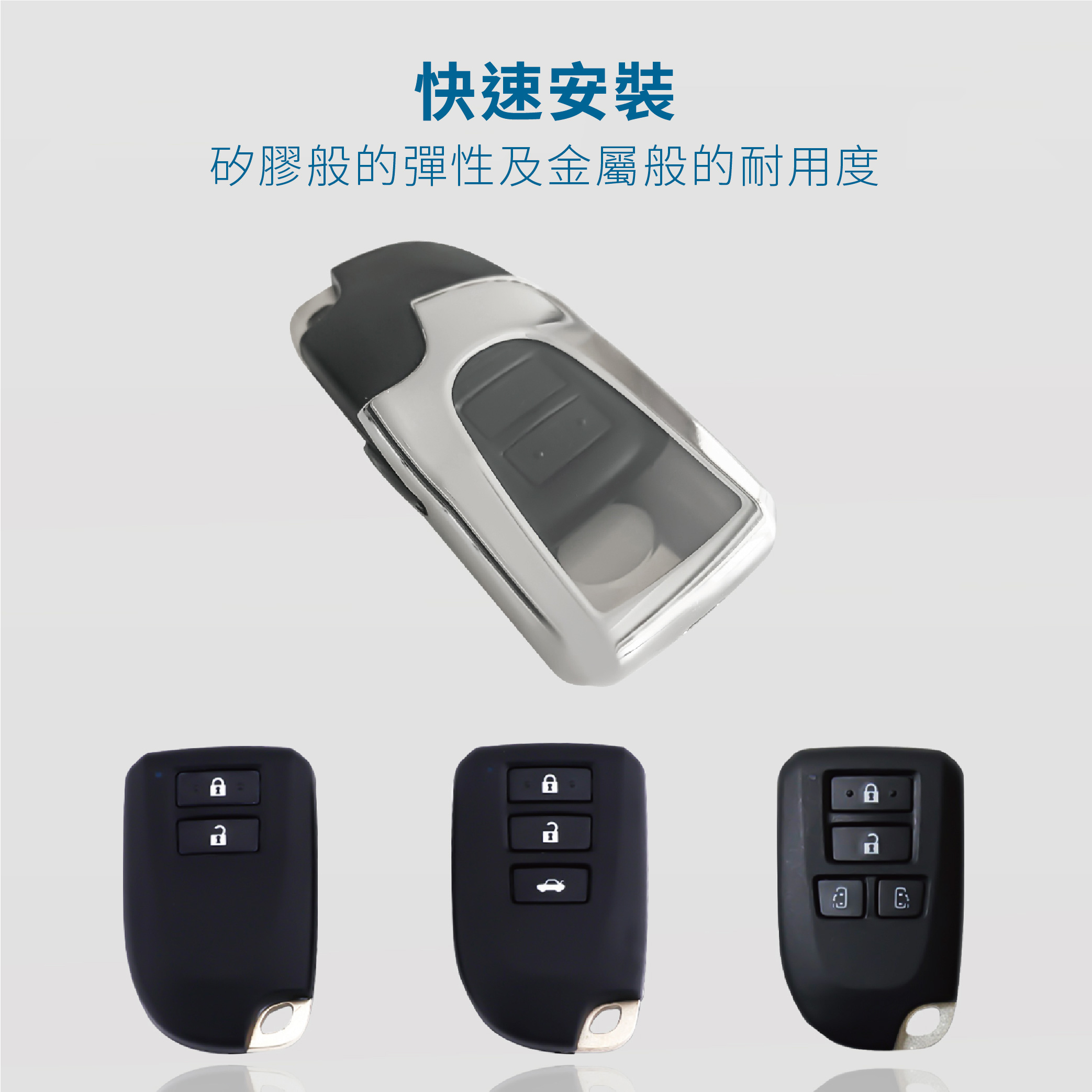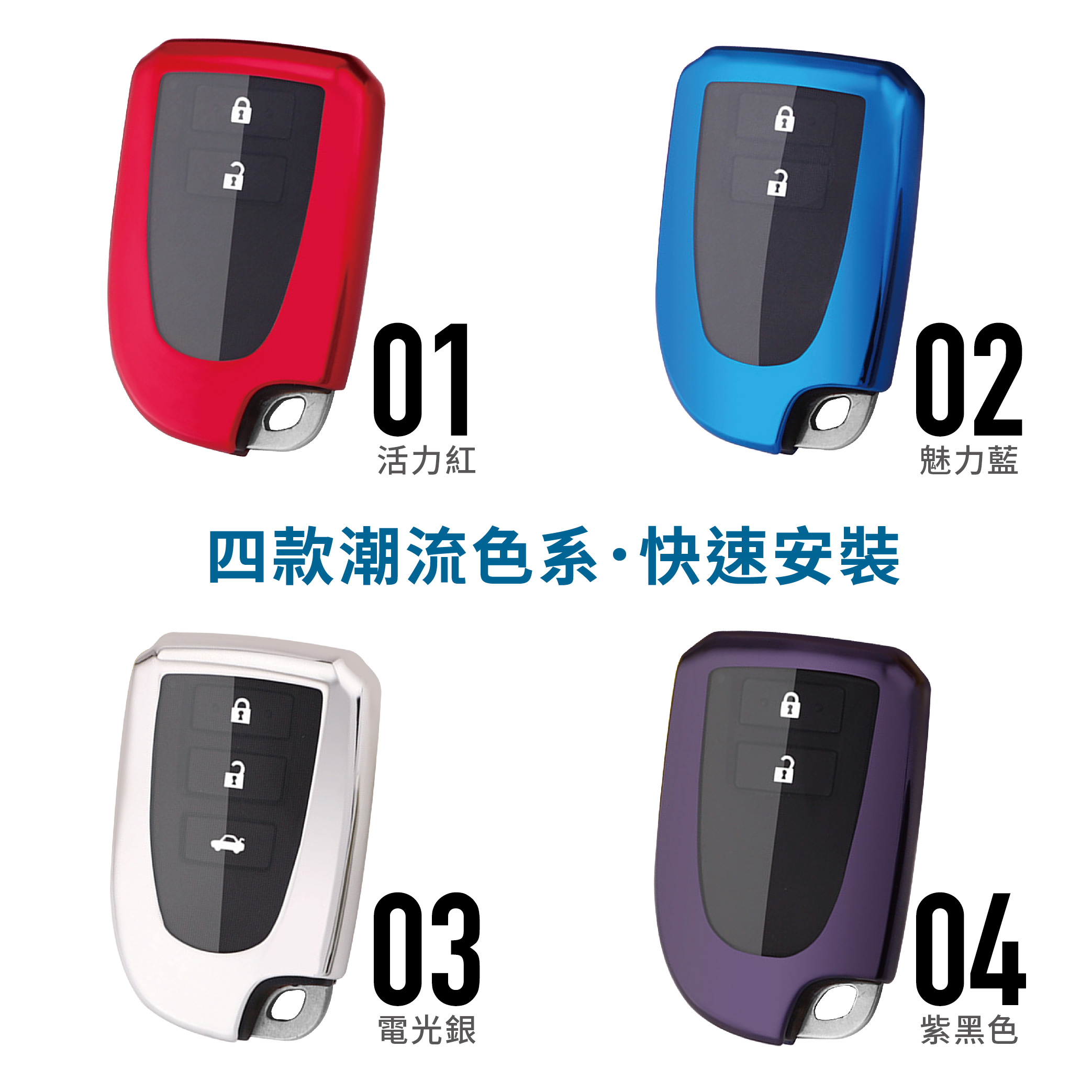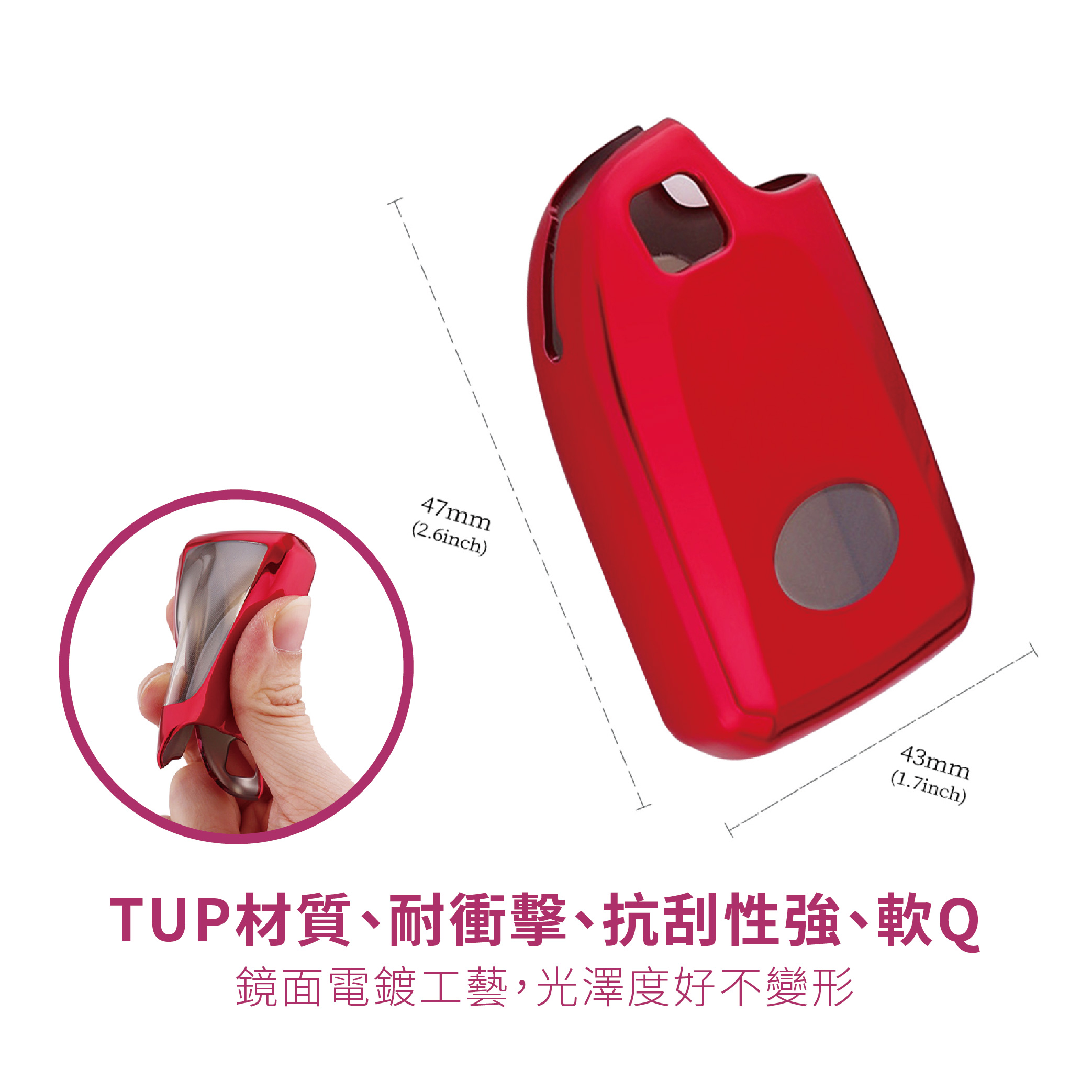 【產品優勢】★年輕簡約配色。★納米TPU材質可反複使用便於清洗★柔韌有彈性的透明膜可防止指甲劃傷按鍵★手感舒適柔軟,回彈性強★不影響信號 ,按鍵靈敏不影響按鍵感應,信號依舊★鏡面電鍍工藝,耐刮防摔★360° 全面保護,防爆 抗摔 高檔時尚 無信號影響 全包防水防刮 保護愛車鑰匙★雙層保護,集美觀實用於壹身★分體式安裝設計,TPU材質環保時尚★量身定制的原始汽車鑰匙★散熱材料 – 吸汗, 防止異味