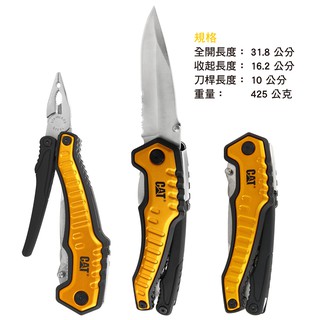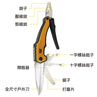 並且CAT 九合一重型多功能工具鉗結合長嘴鉗、剪線鉗、剝線鉗、折疊刀、開瓶器、十字螺絲起子、一字螺起子、鋸子8個最常用工具,成就了CAT 九合一重型多功能工具鉗這樣的居家生活、登山露營、野外求生神器了。